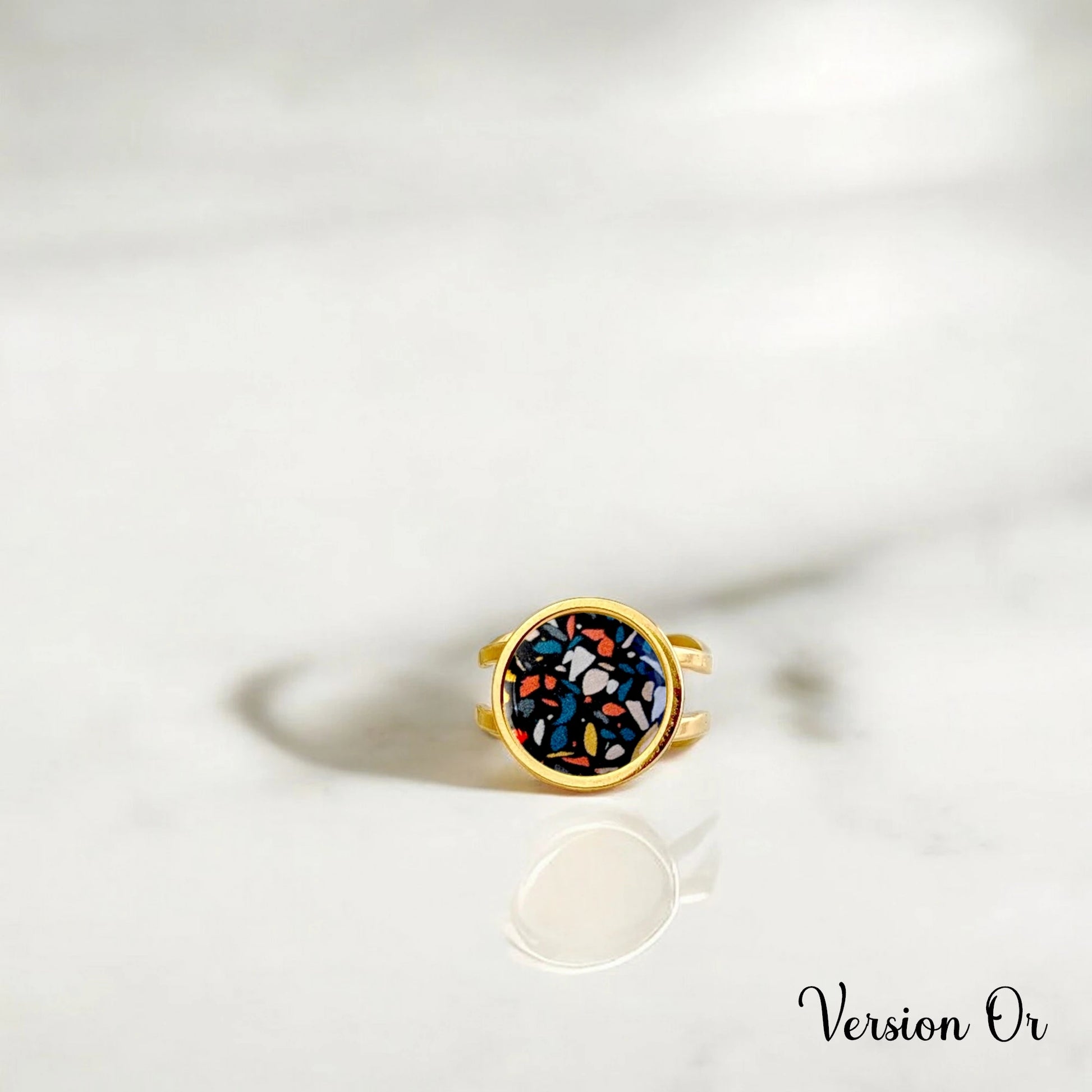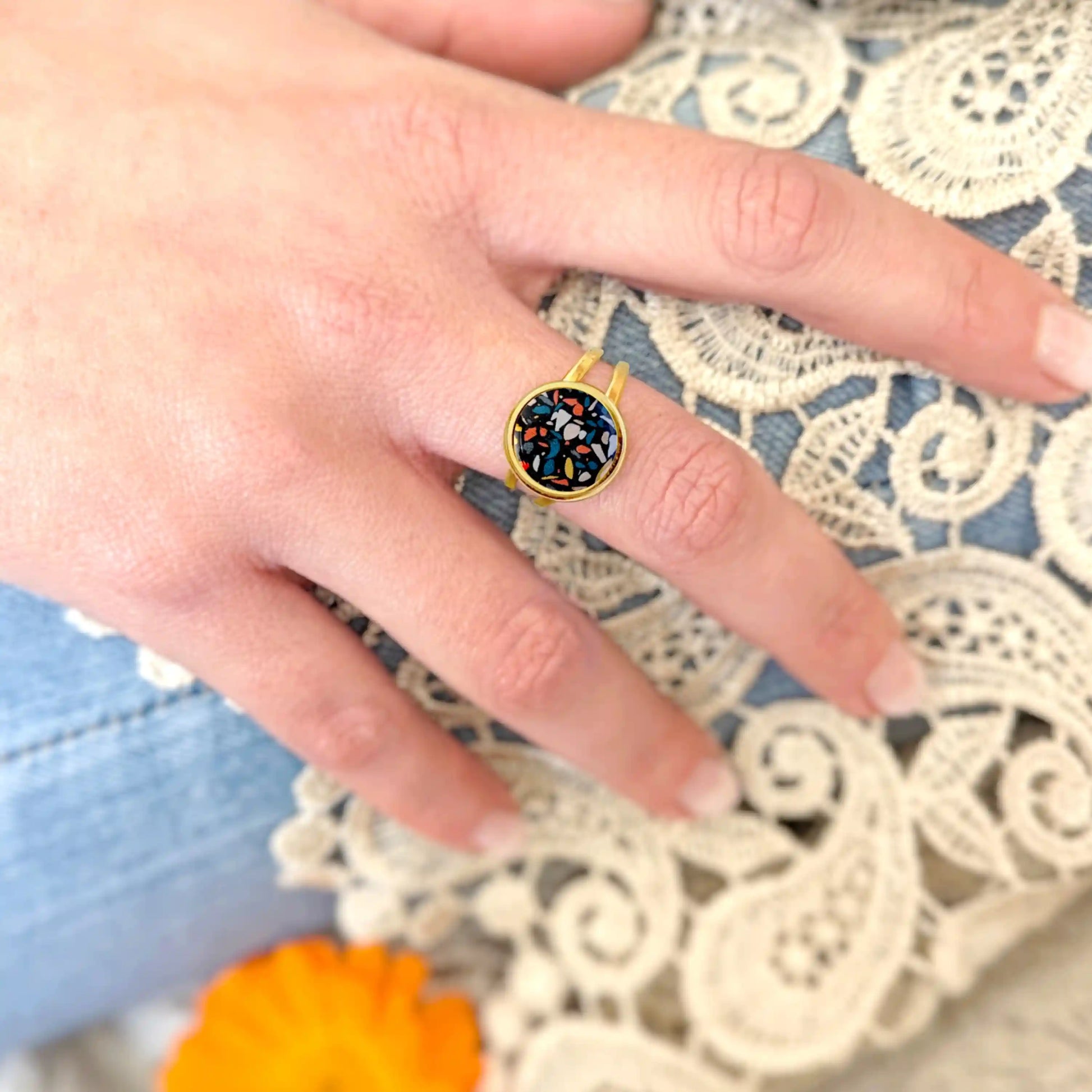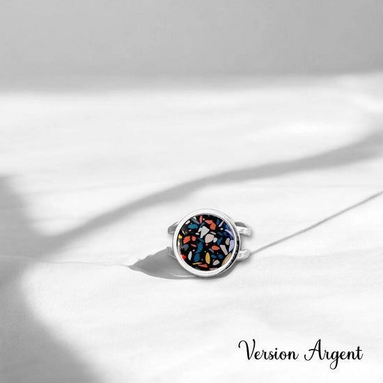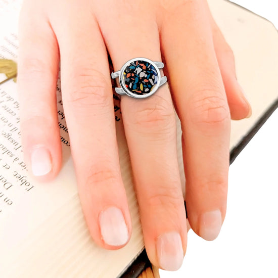 Bague terrazzo pour femme en acier inoxydable et résine
