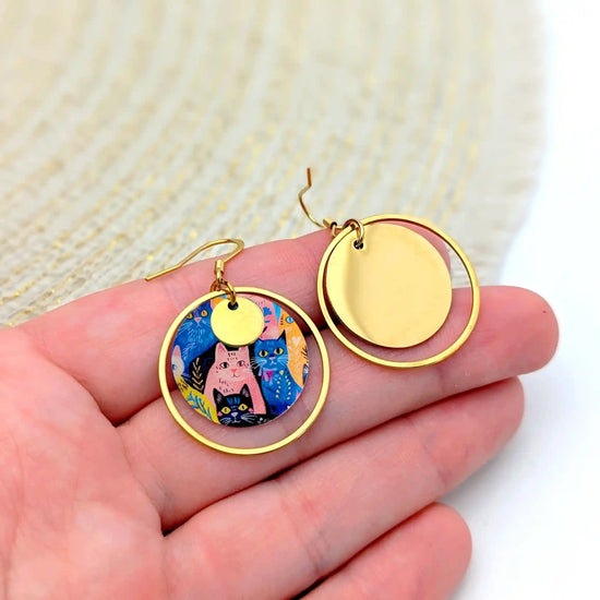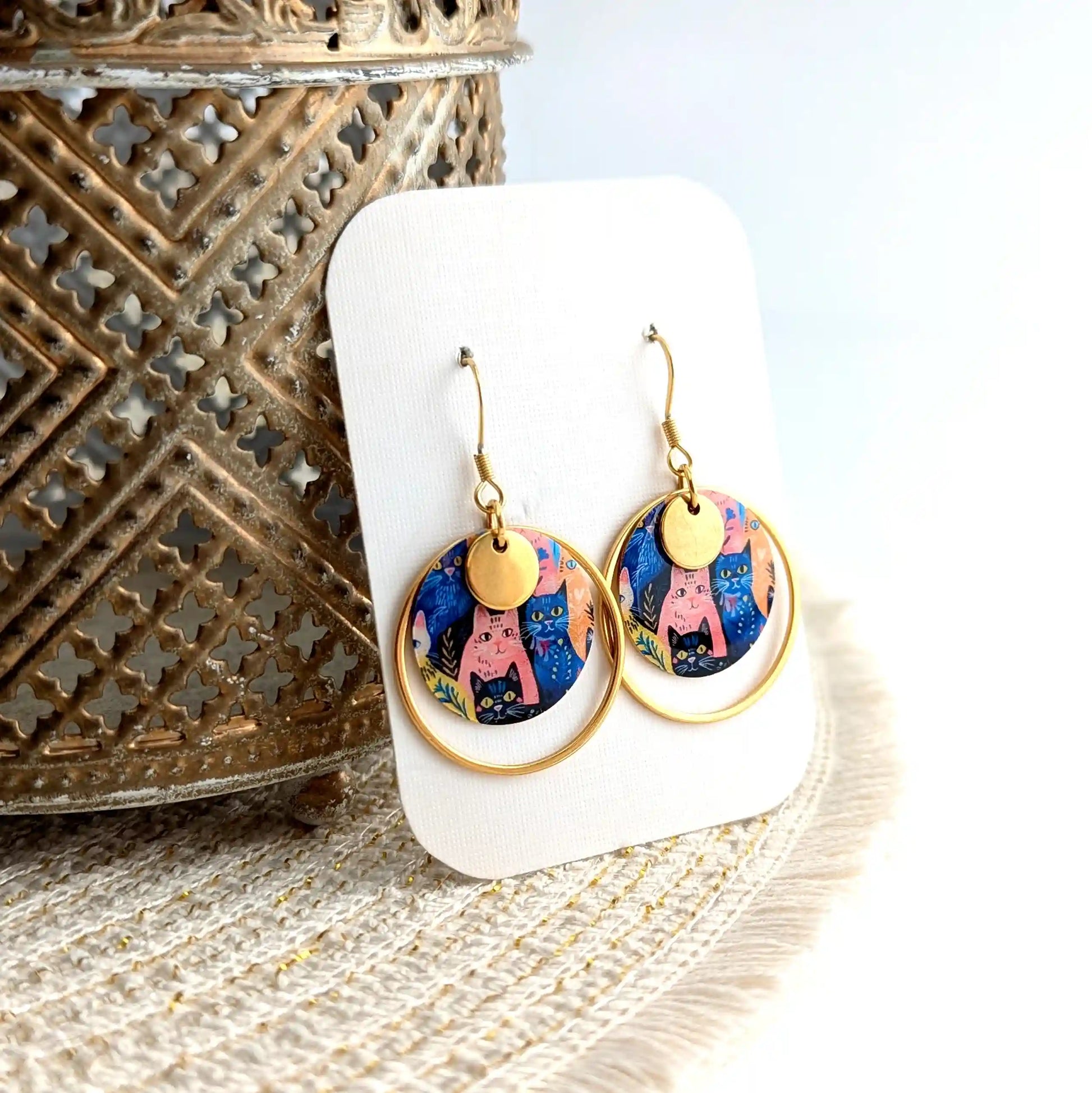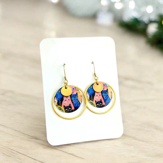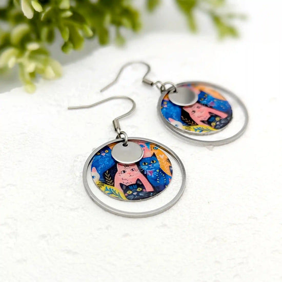 Boucles d’oreilles chats fun en résine et acier inoxydable pour femme