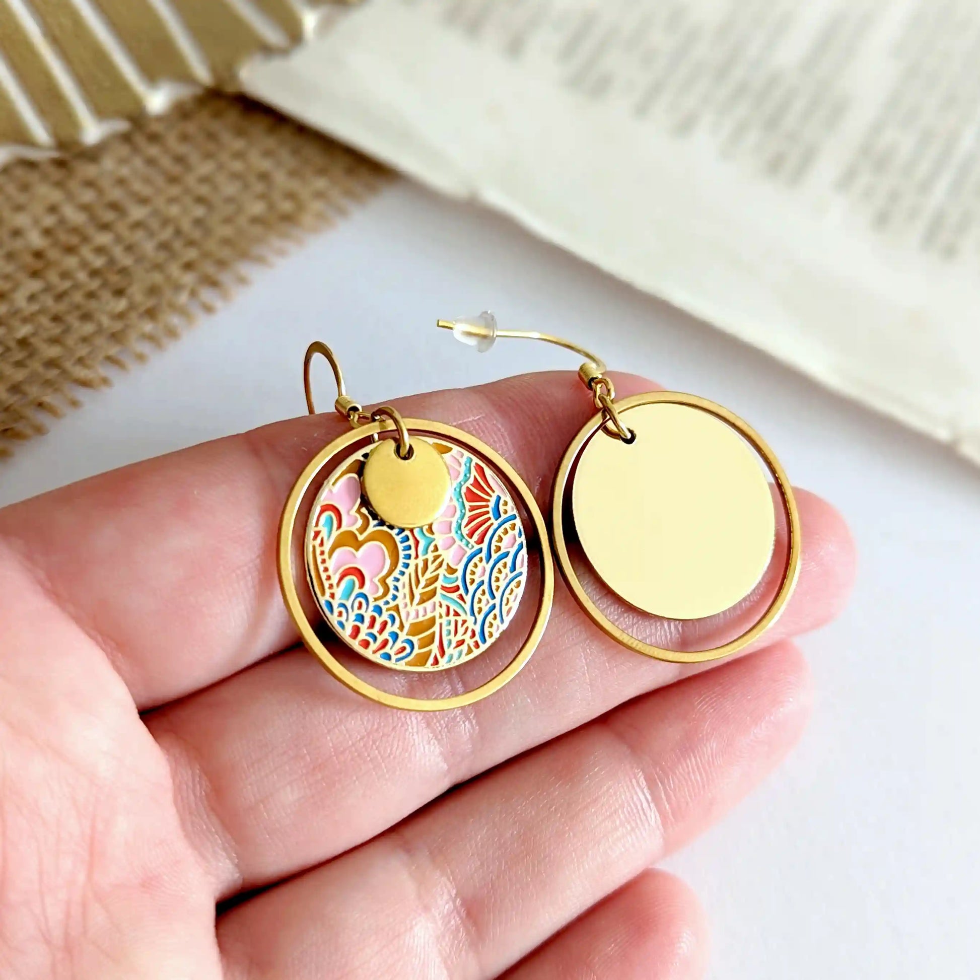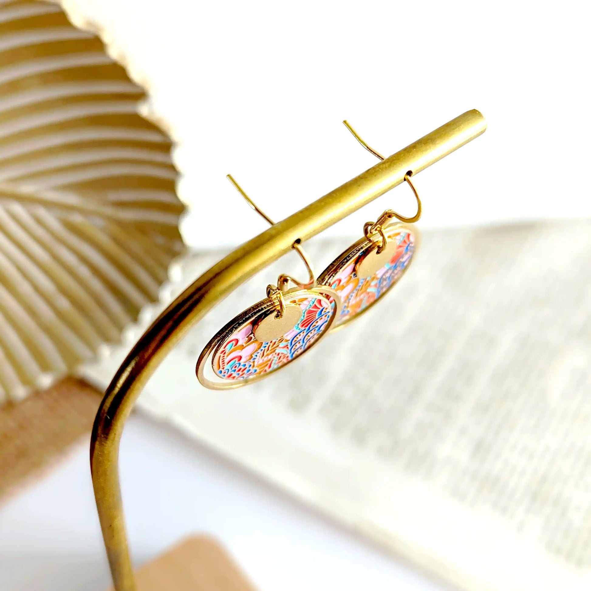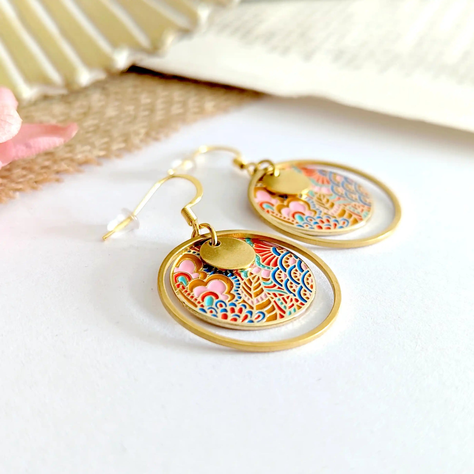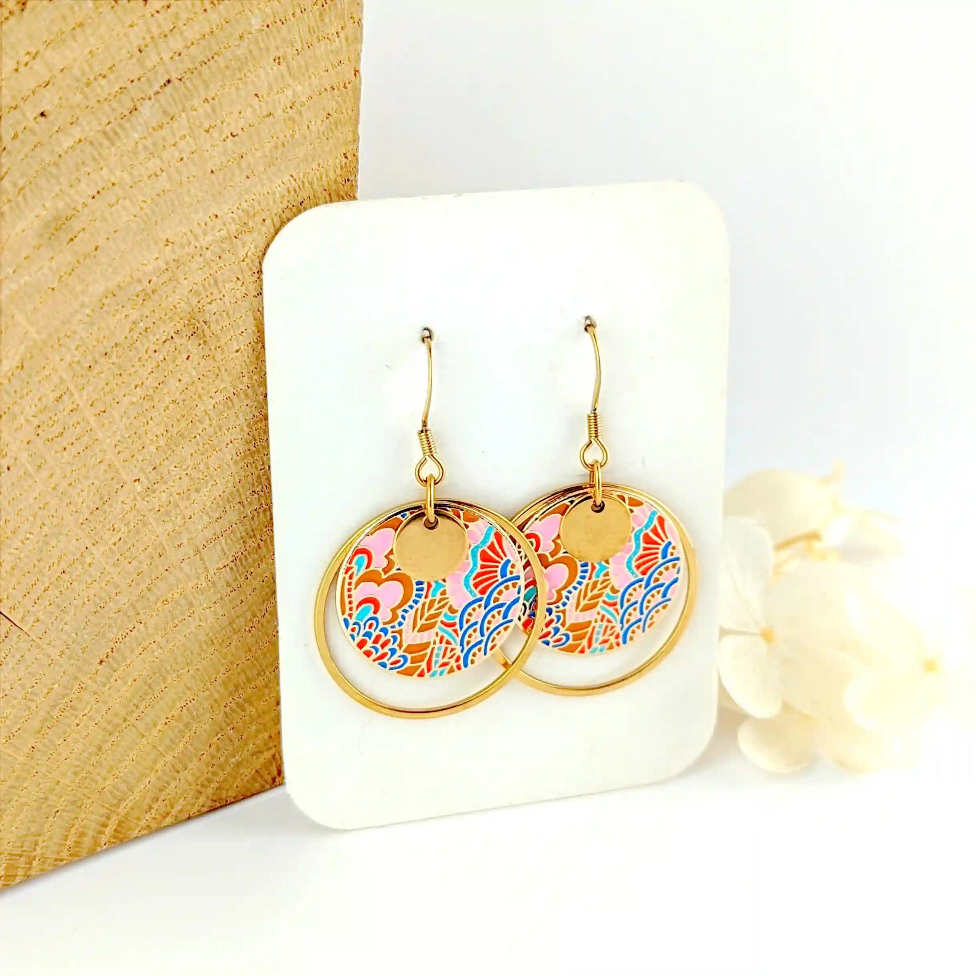 Boucles d’oreilles pendantes en émail multicolore pour femme