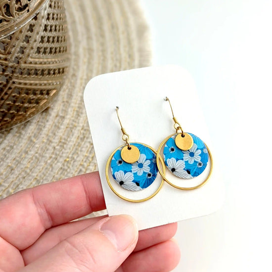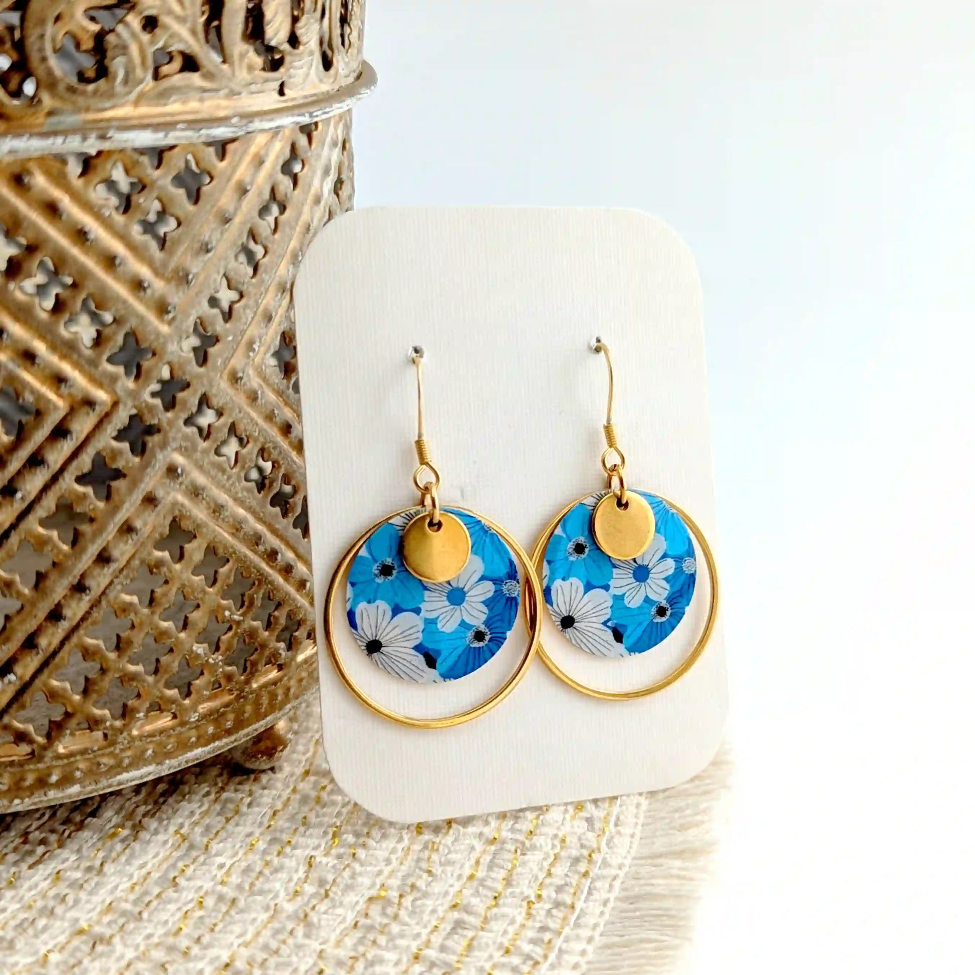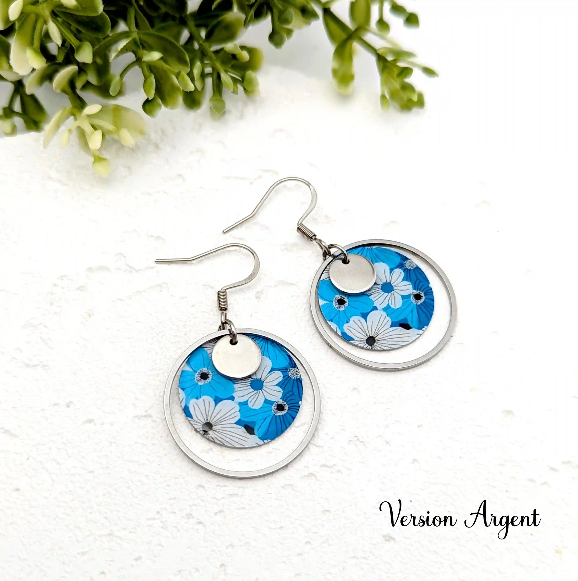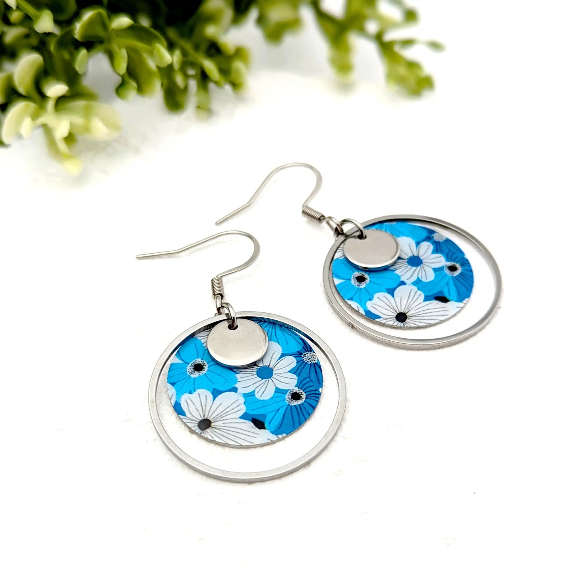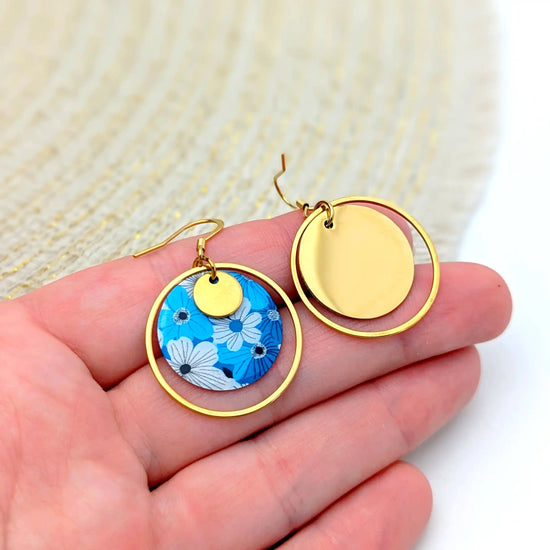 Boucles d’oreilles fleurs bleues en résine et acier inoxydable pour femme