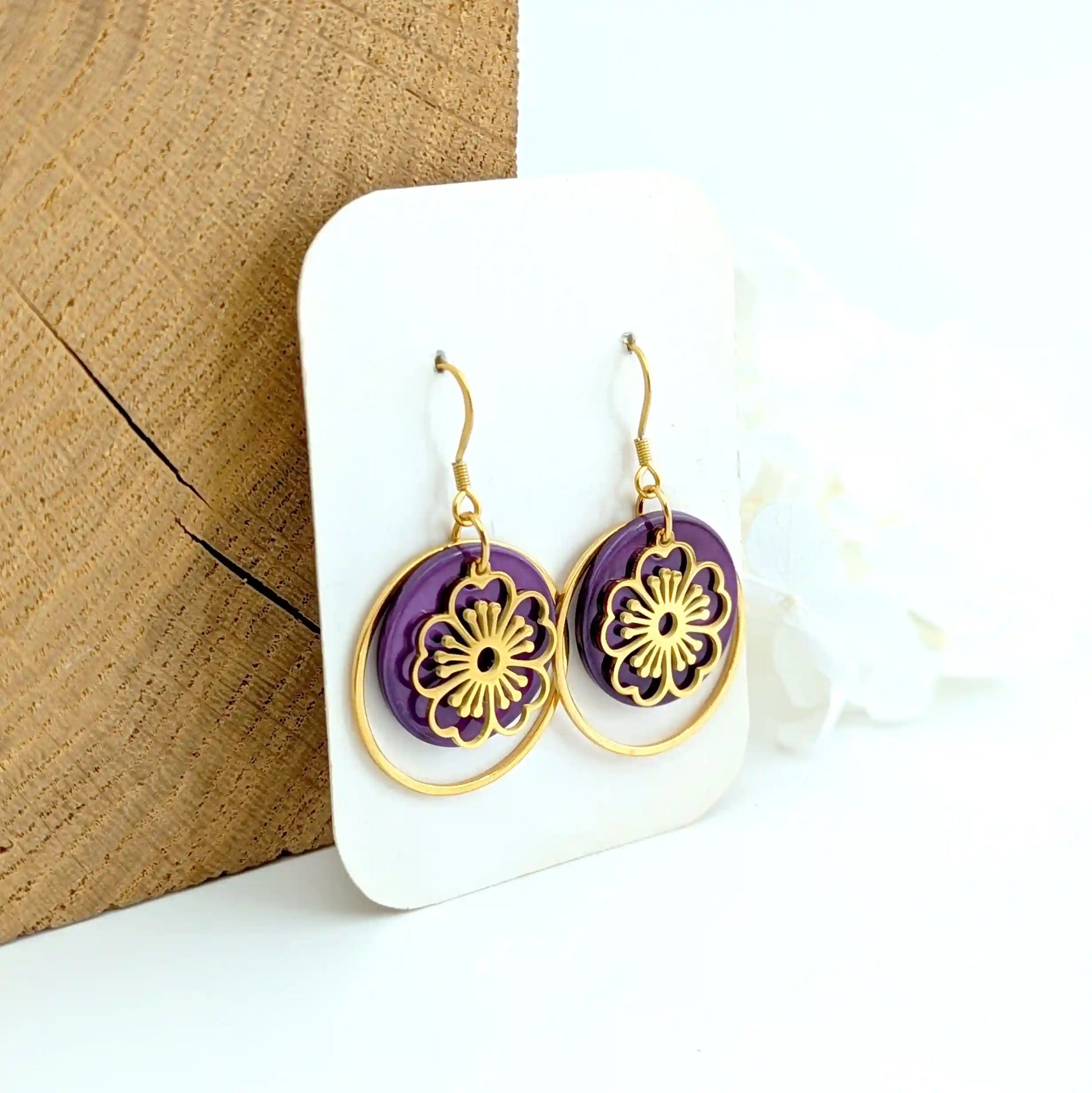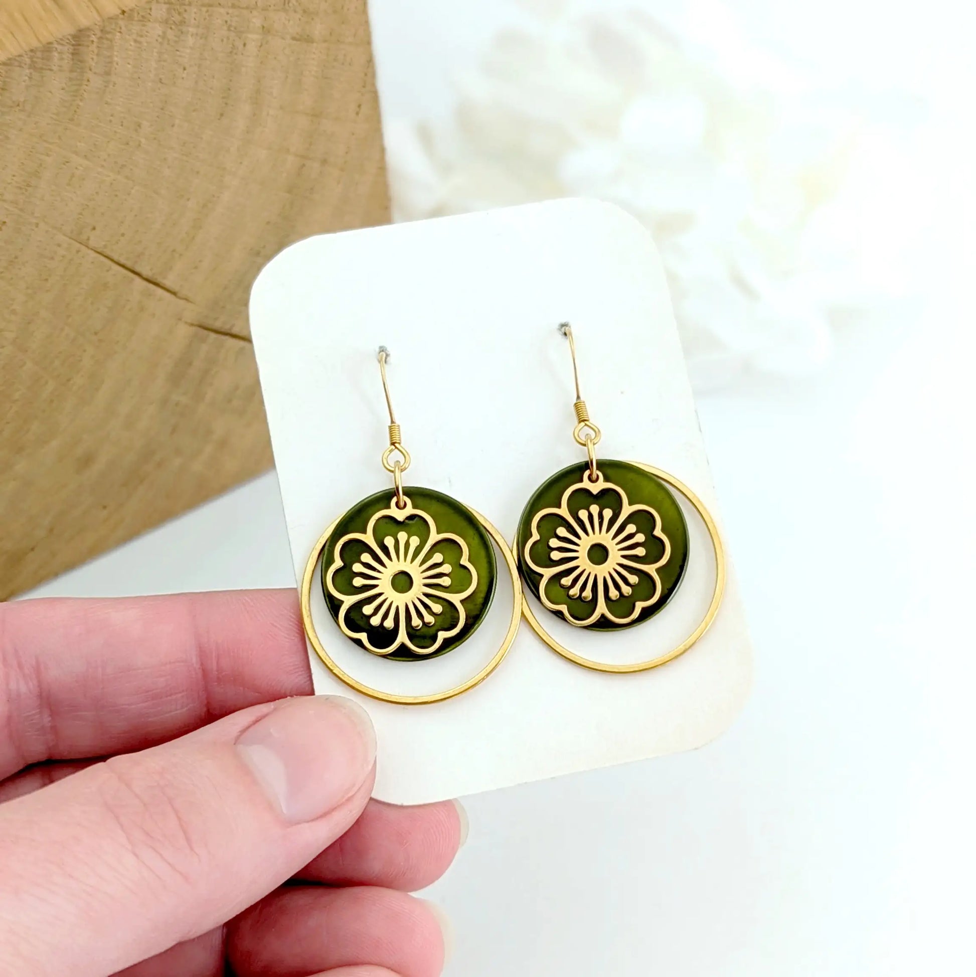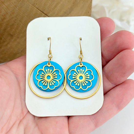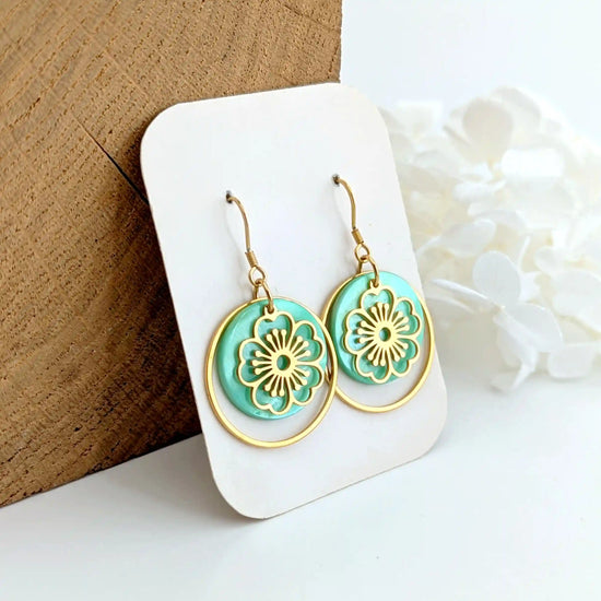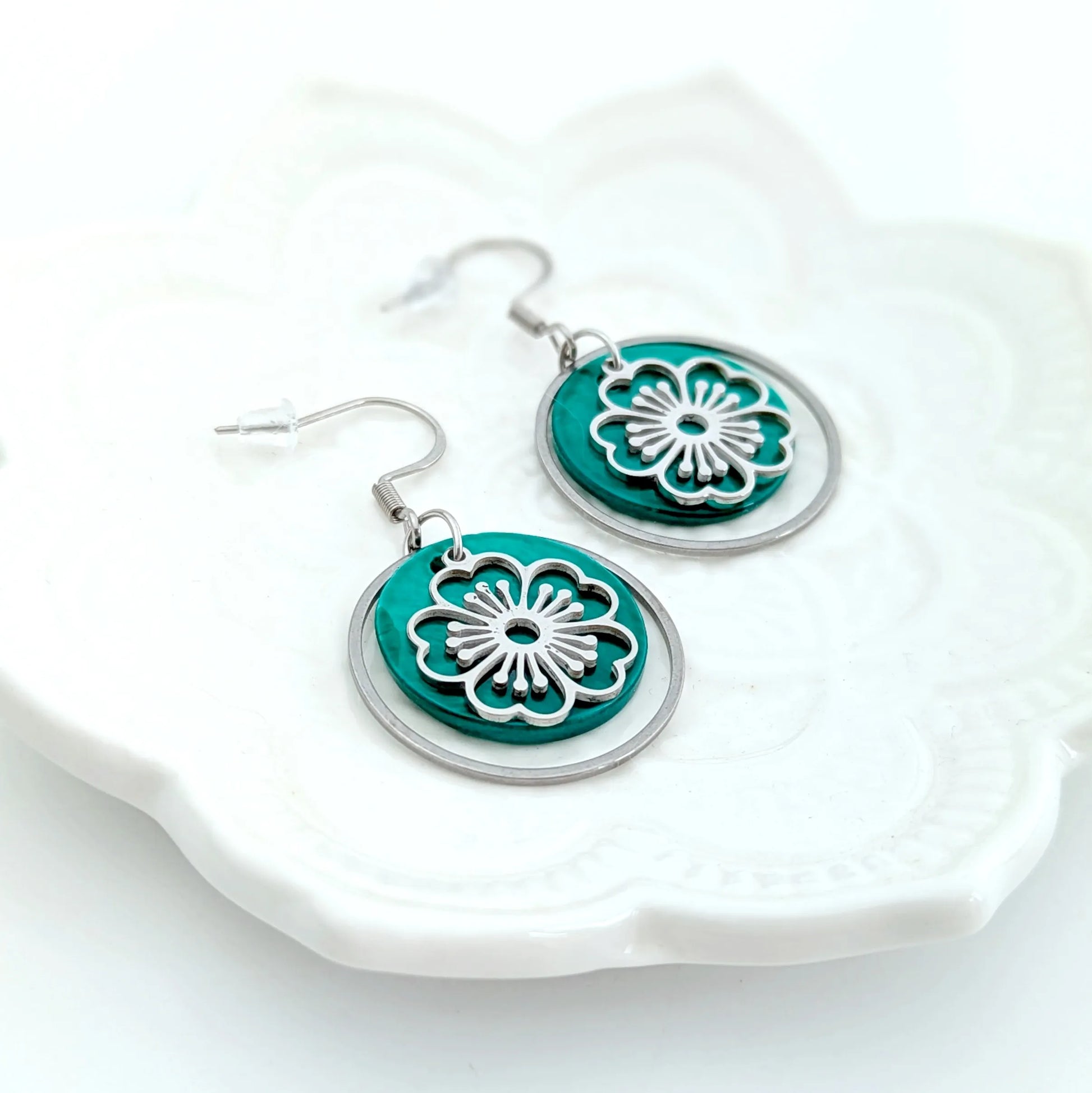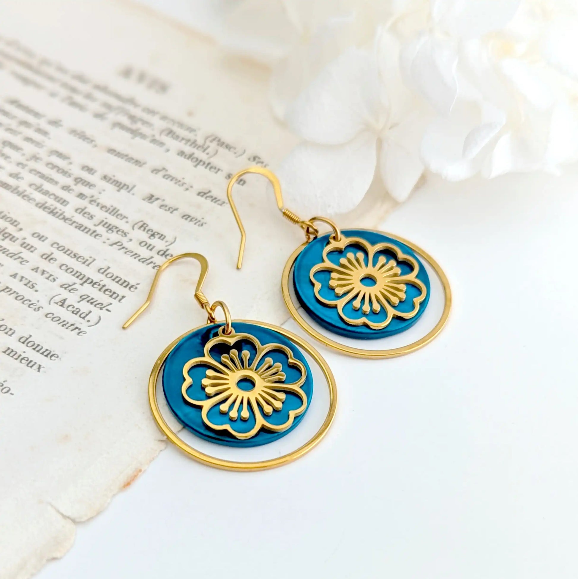 Boucles d’oreilles Fleurs de Cerisier en nacre et acier inoxydable