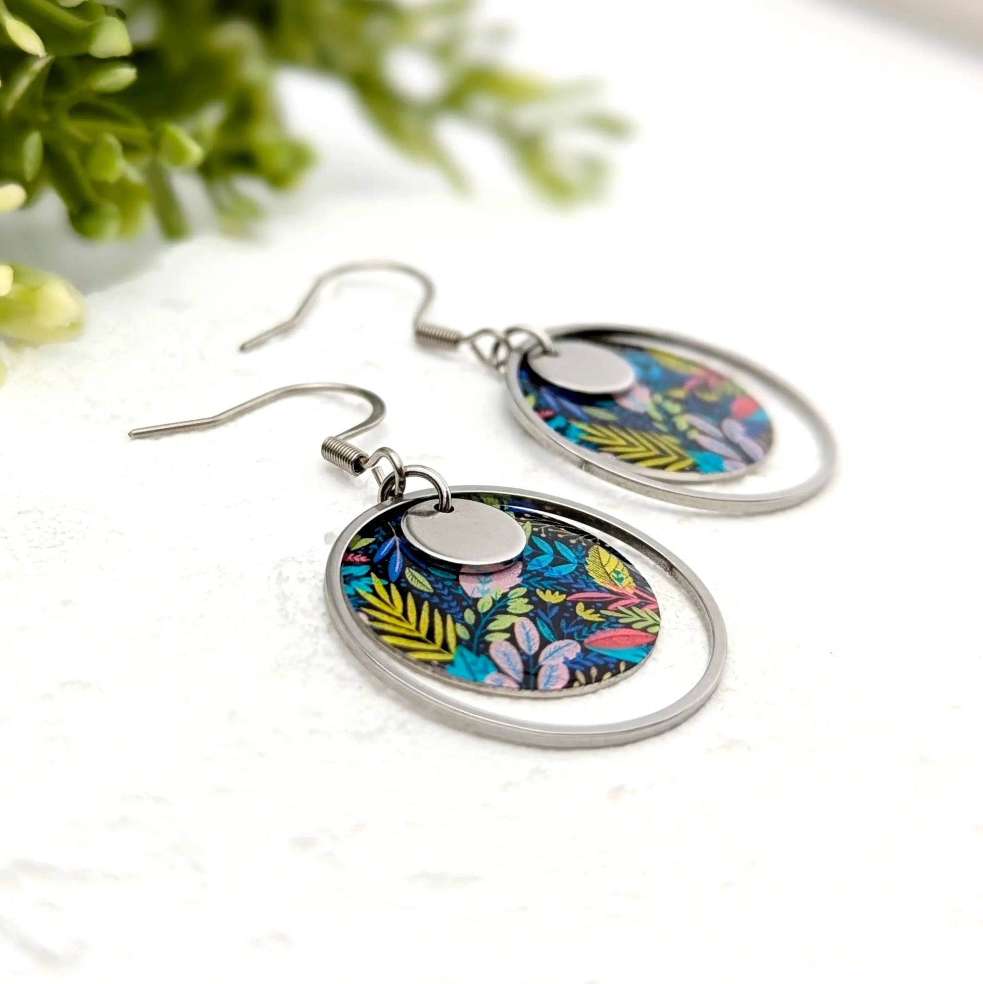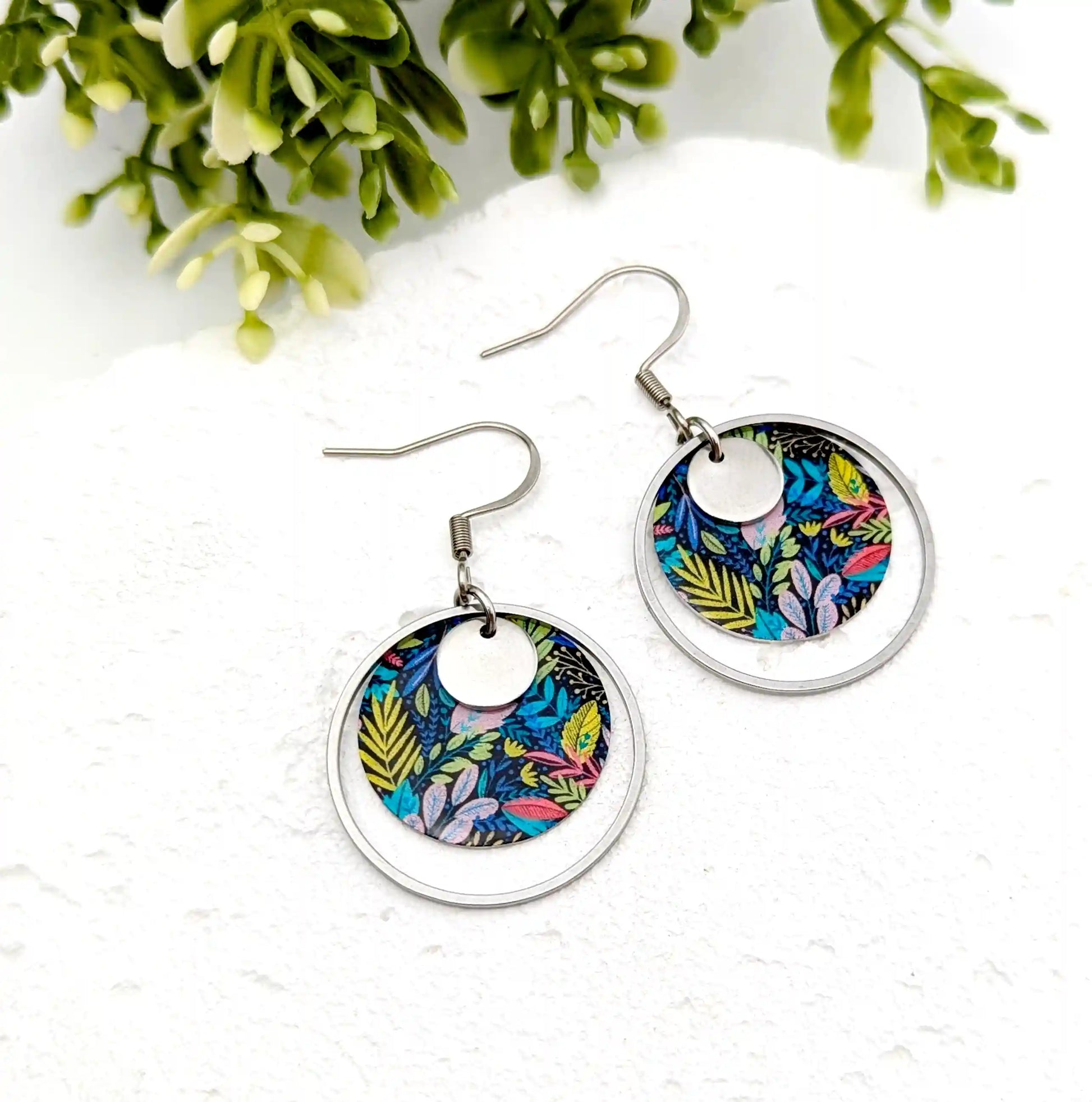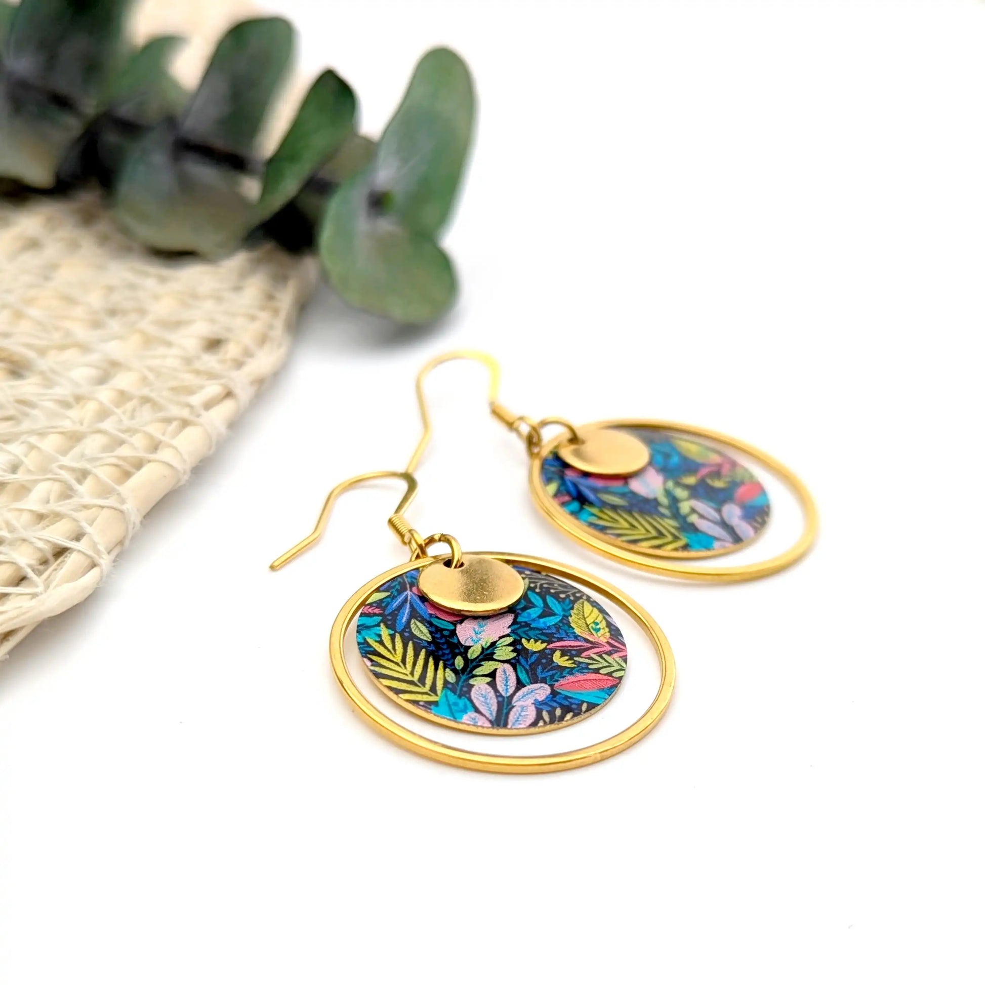 Boucles d’oreilles fleurs multicolores résine et acier inoxydable pour femme - Jardin boho