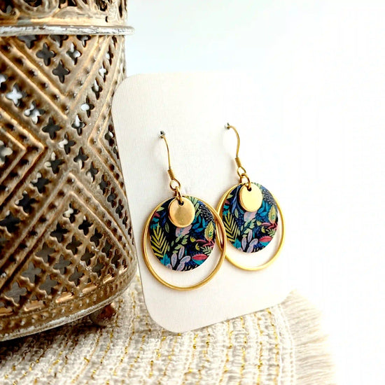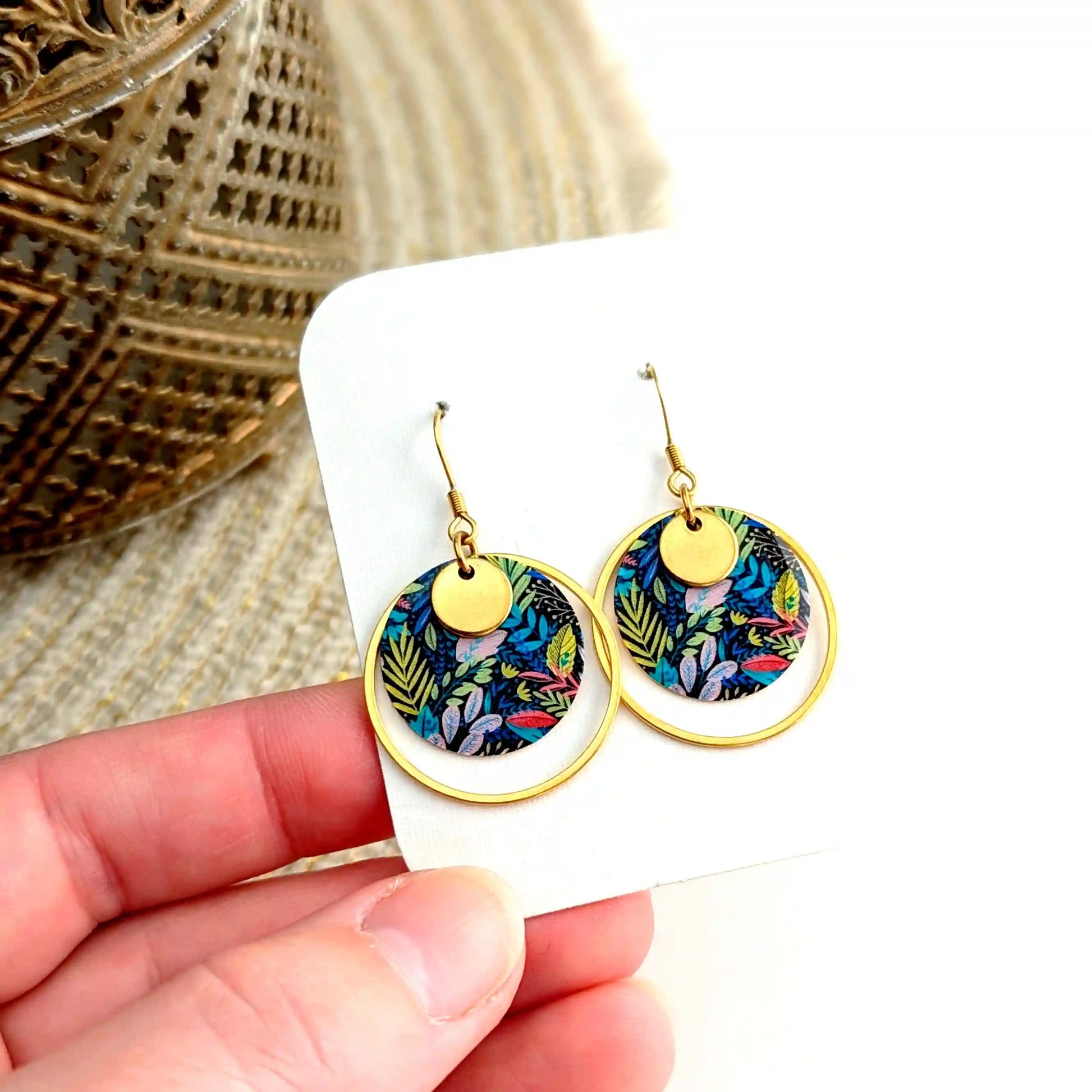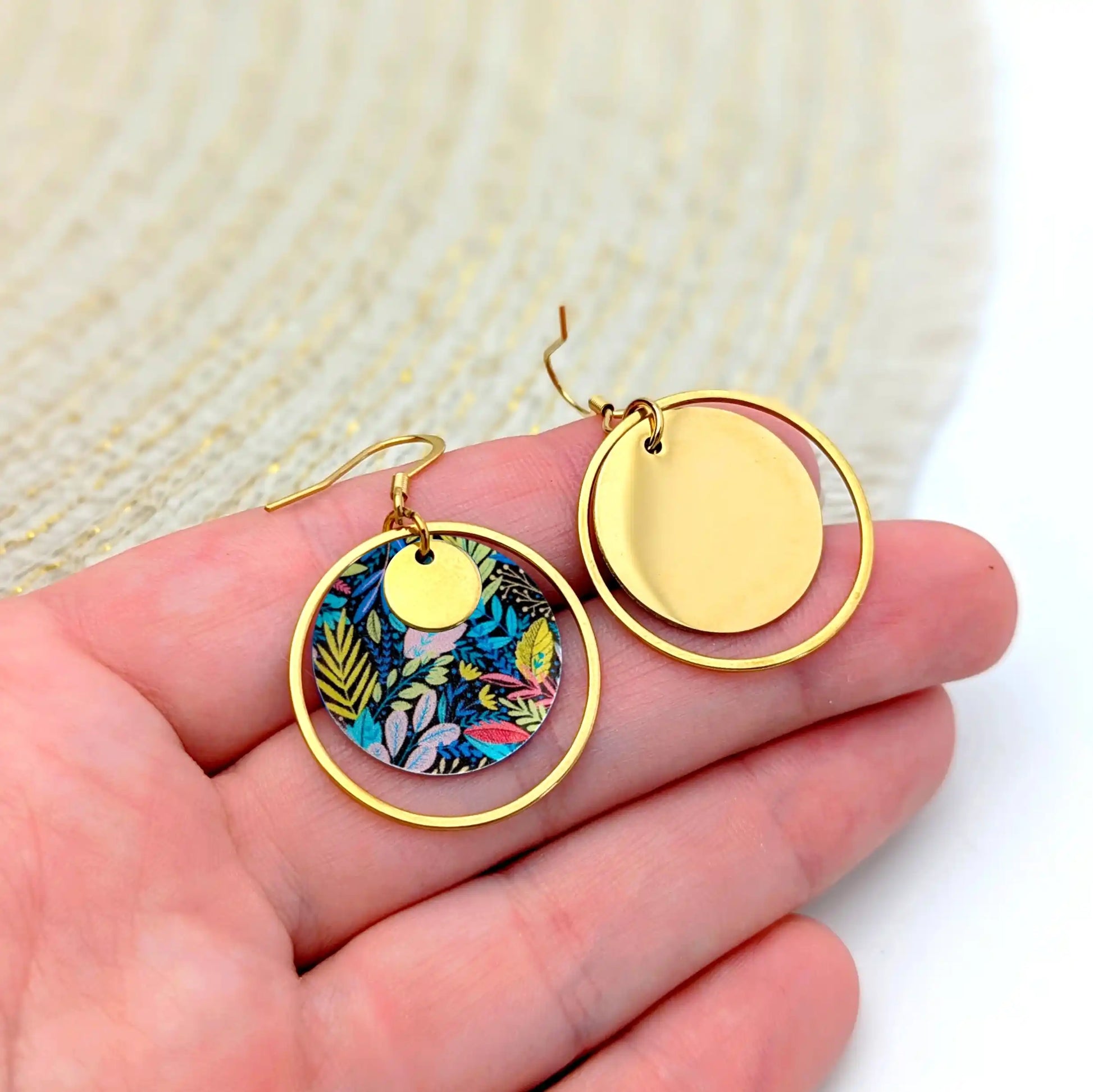 Boucles d’oreilles fleurs multicolores résine et acier inoxydable pour femme - Jardin boho
