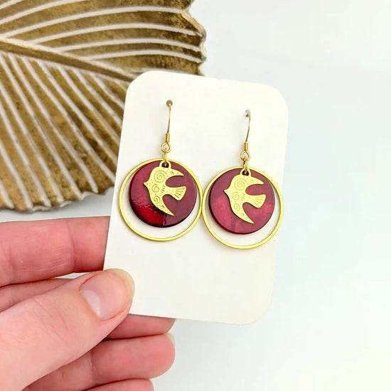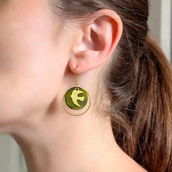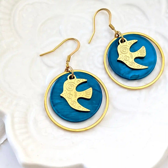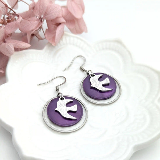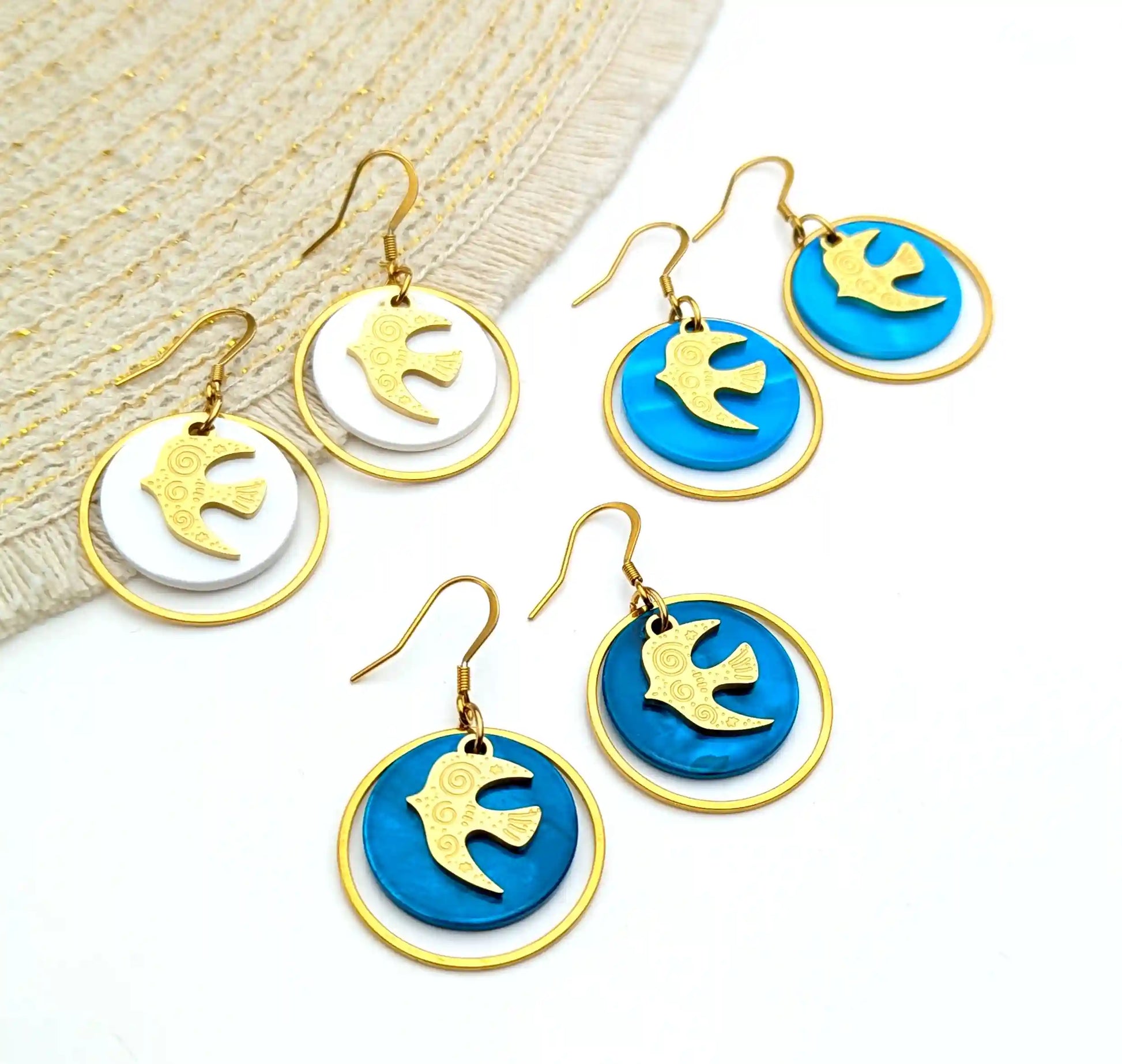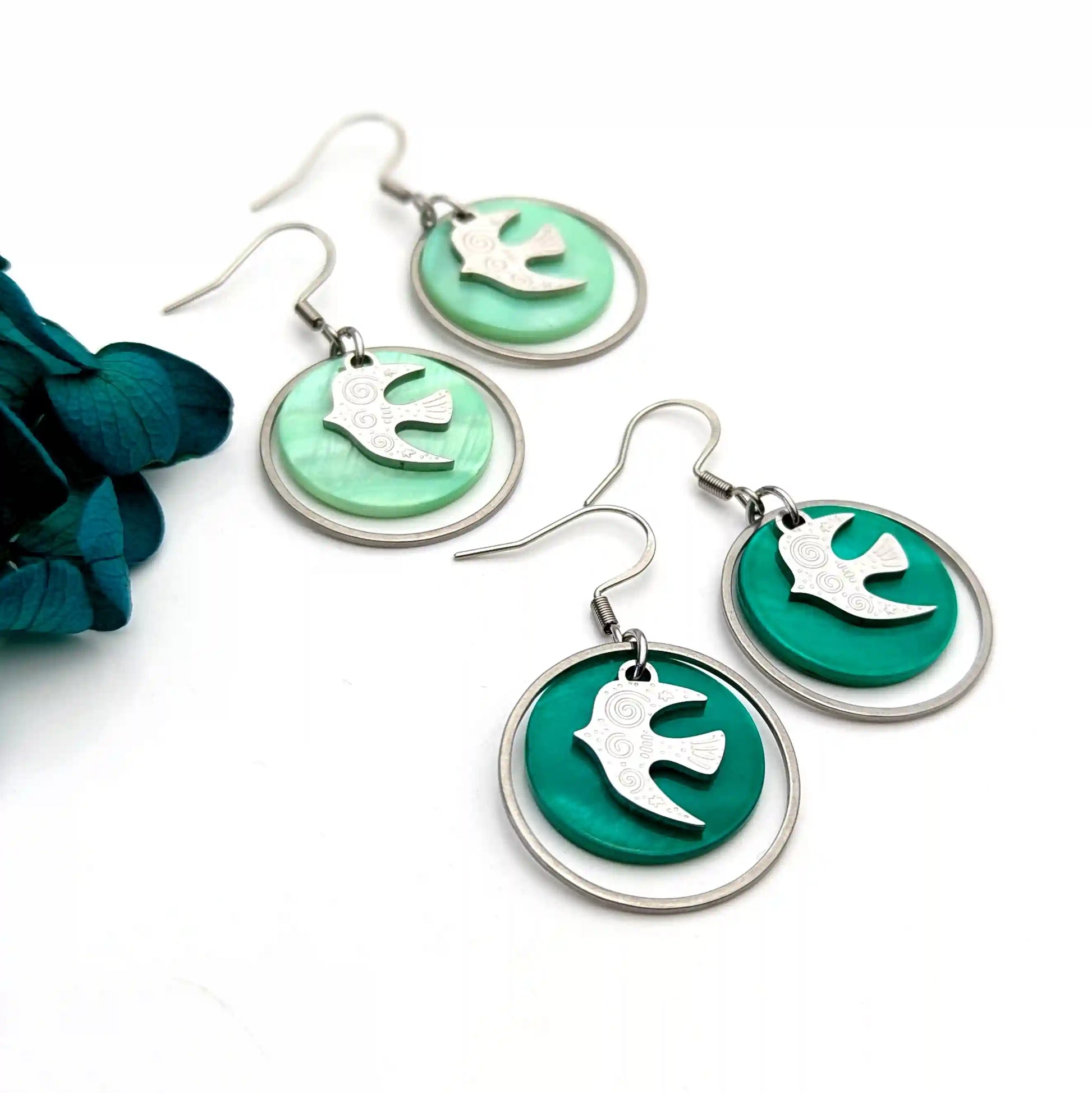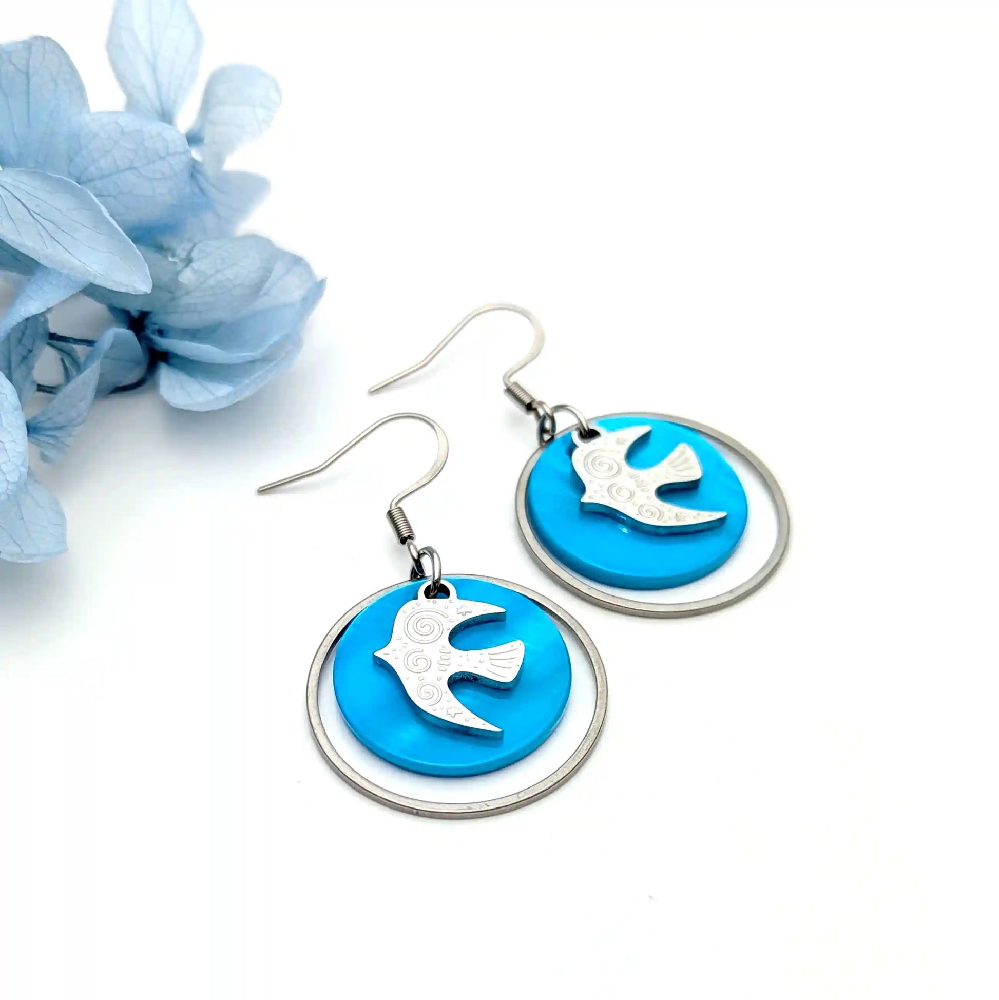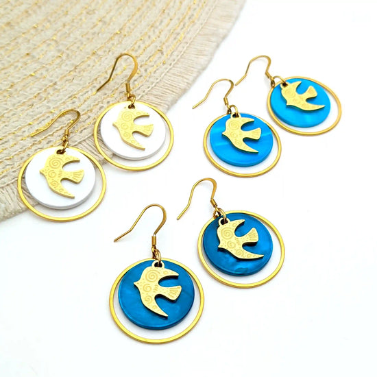 Boucles d’oreilles Liberté en nacre colorée et Hirondelles en acier inoxydable