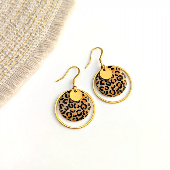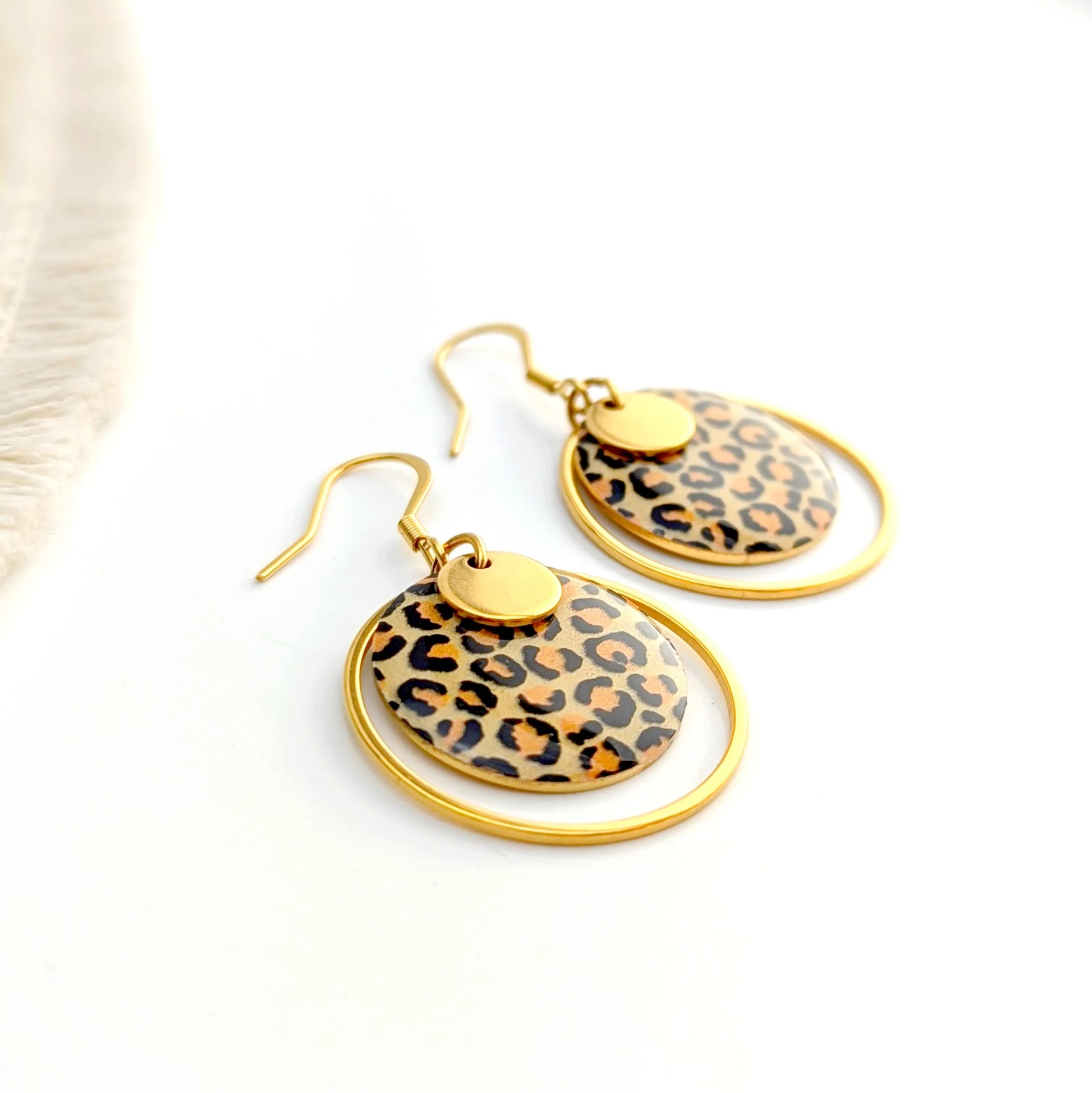 Boucles d’oreilles Léopard en résine et acier inoxydable pour femme
