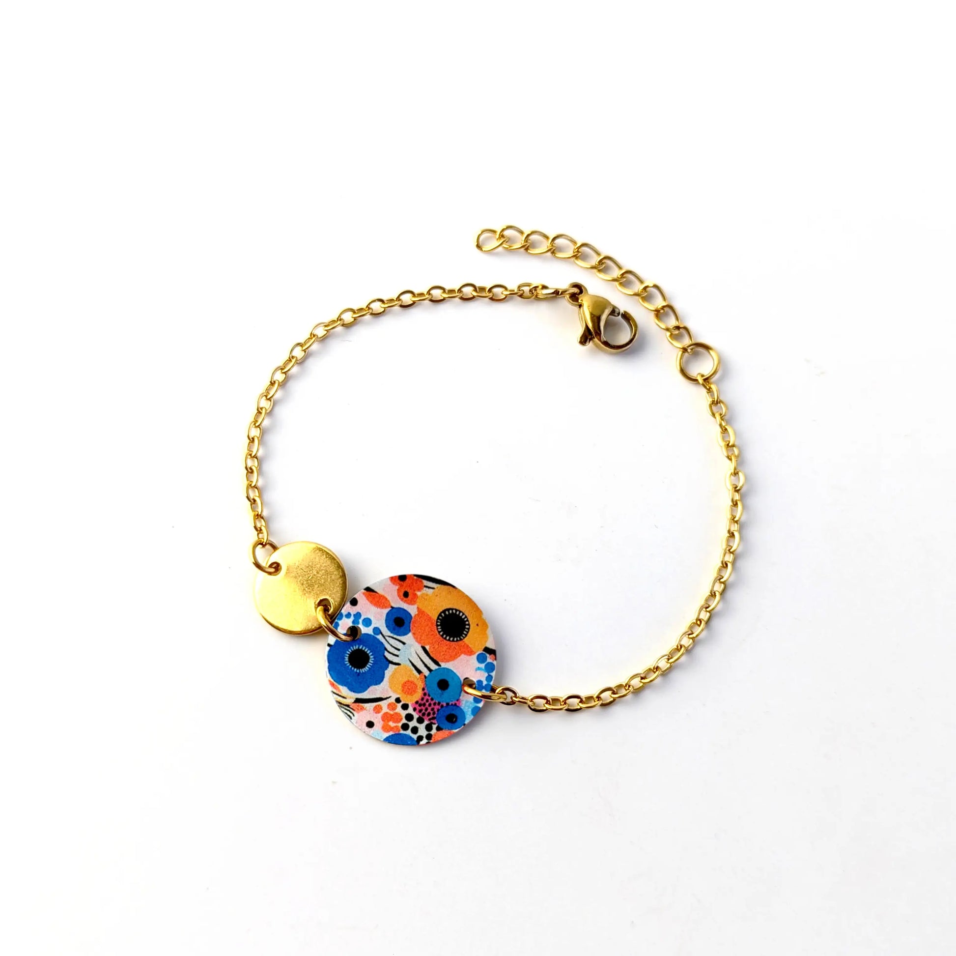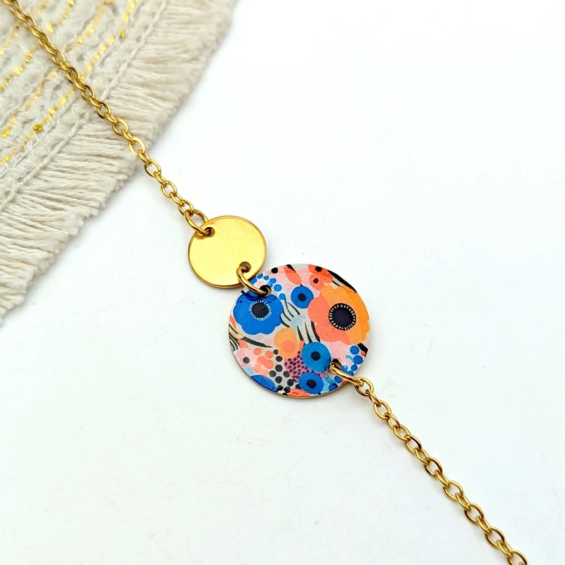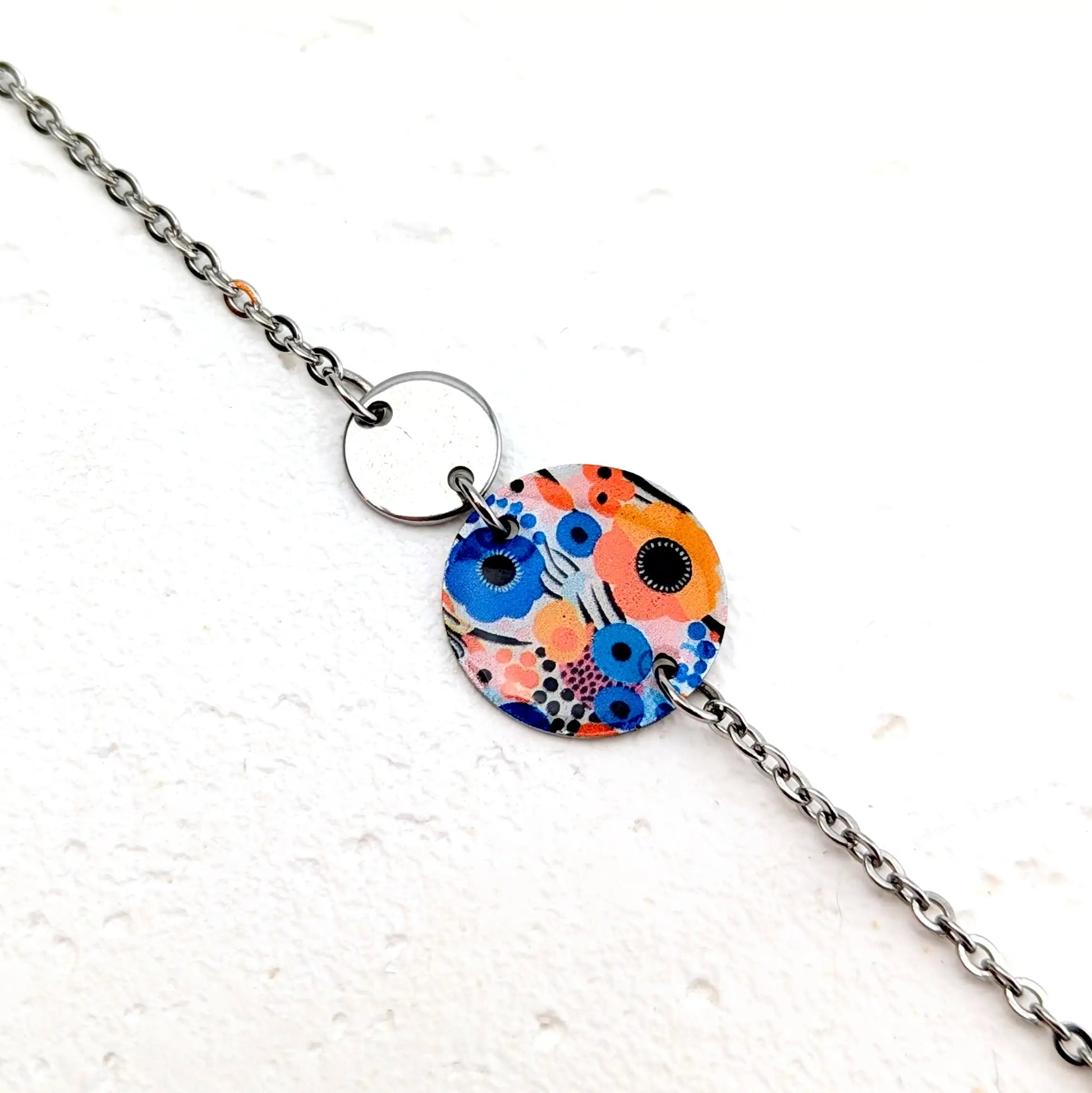 Bracelet Art abstrait orange et bleu en résine et acier inoxydable pour femme