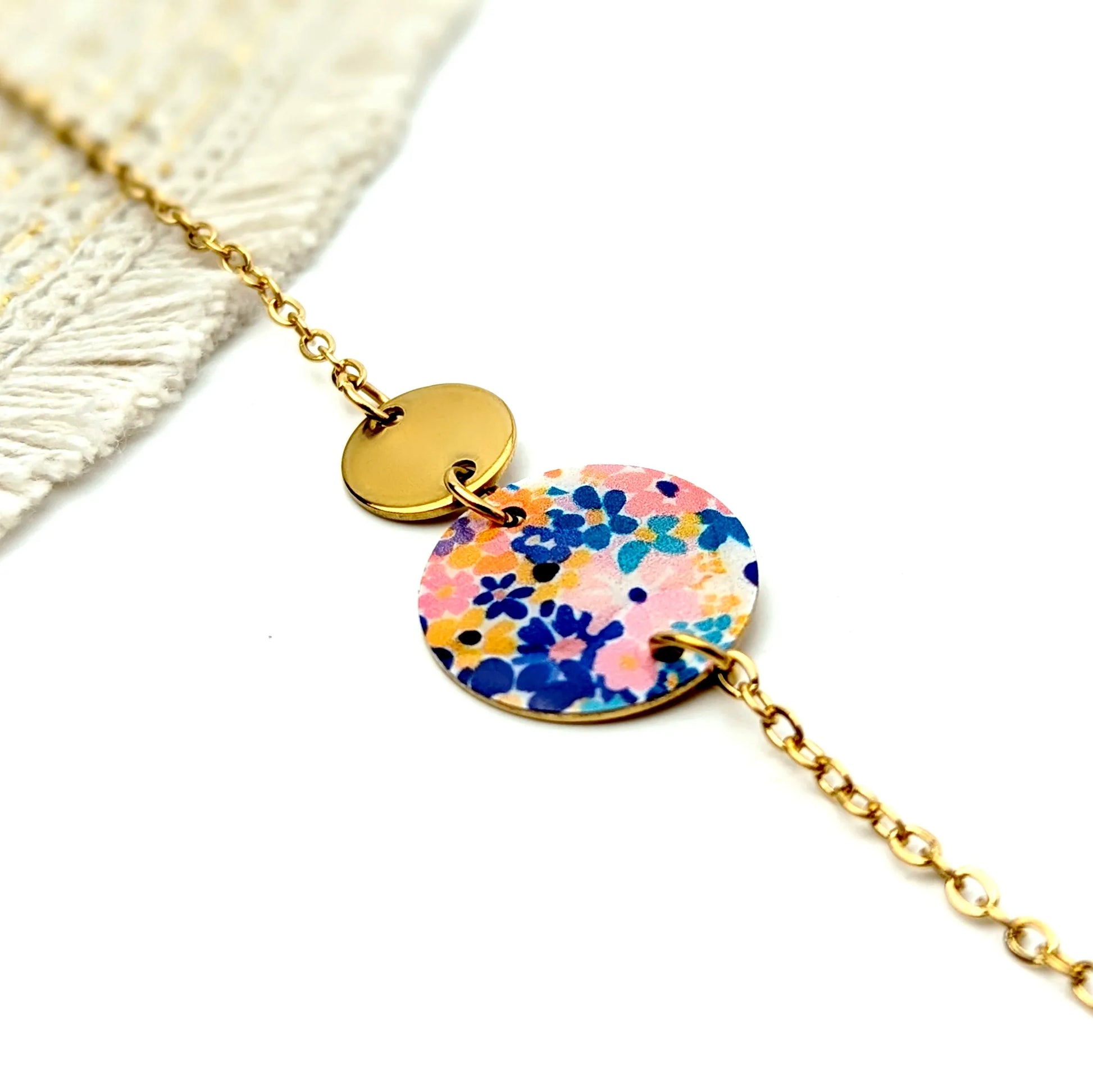 Bracelet fleurs Aquarelle en résine et acier inoxydable pour femme