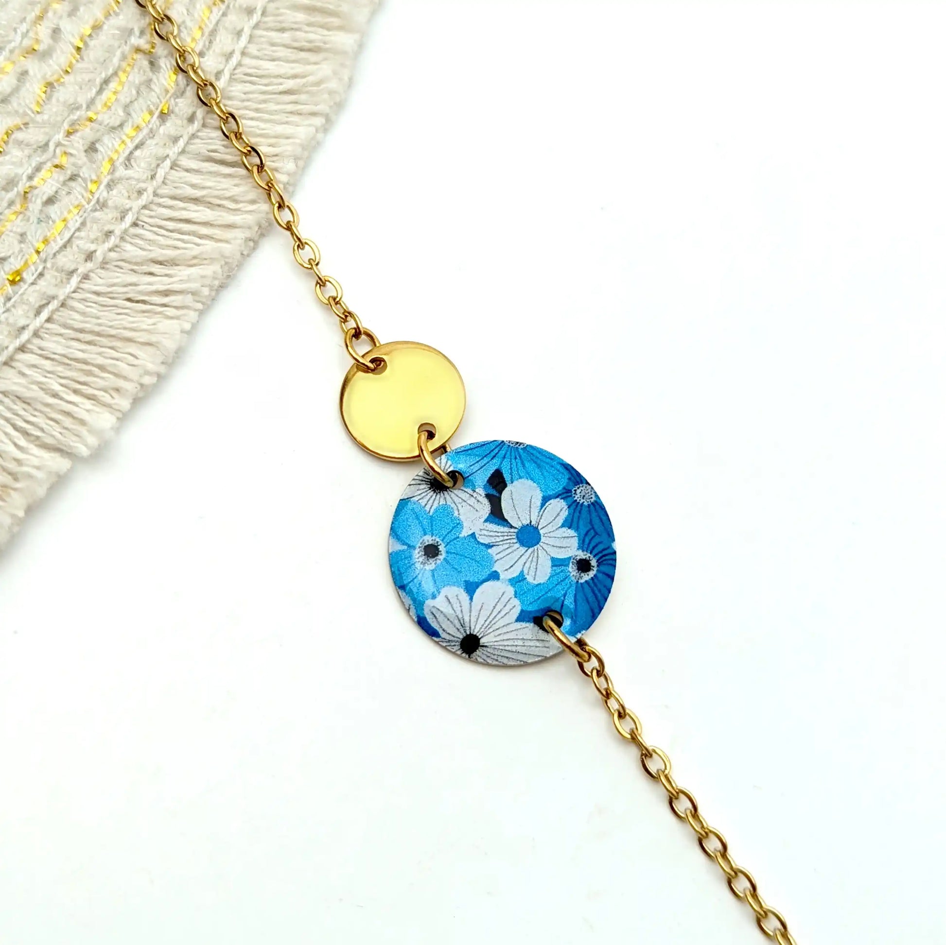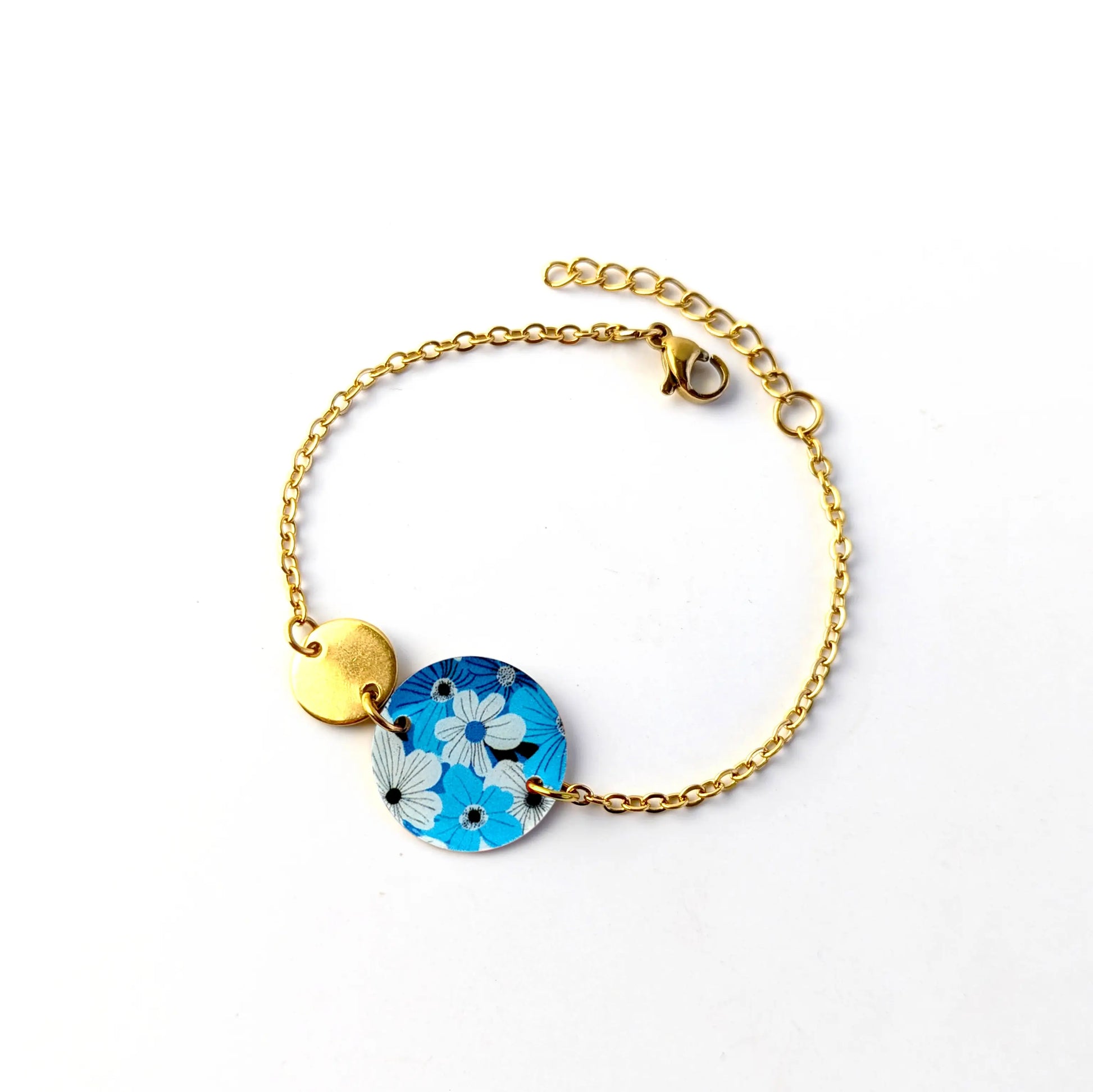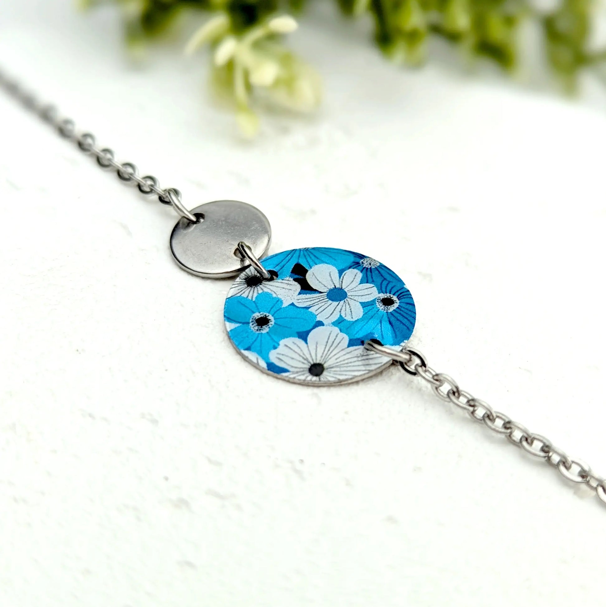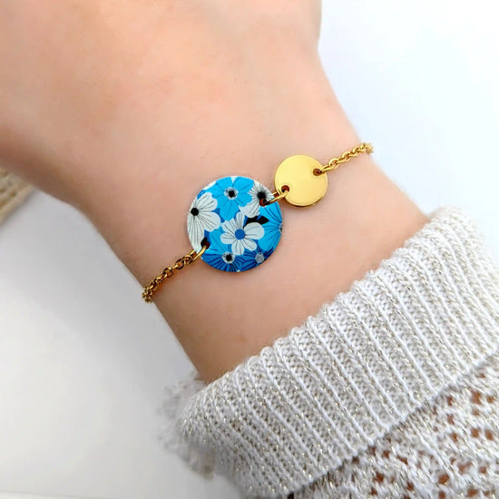 Bracelet Fleurs bleues en résine et acier inoxydable pour femme