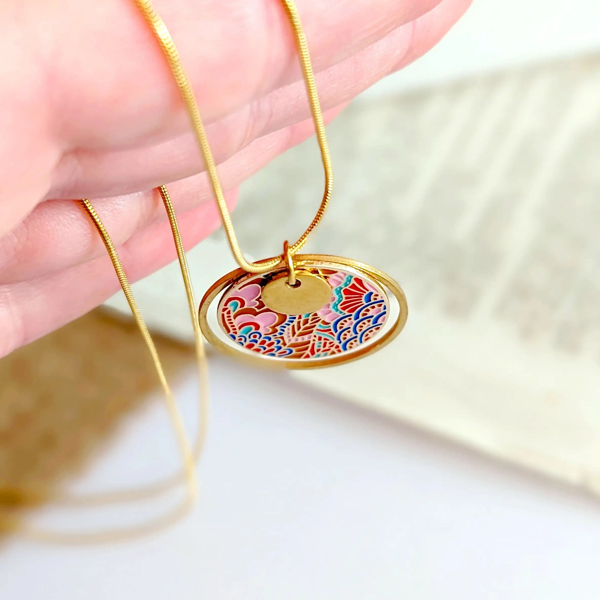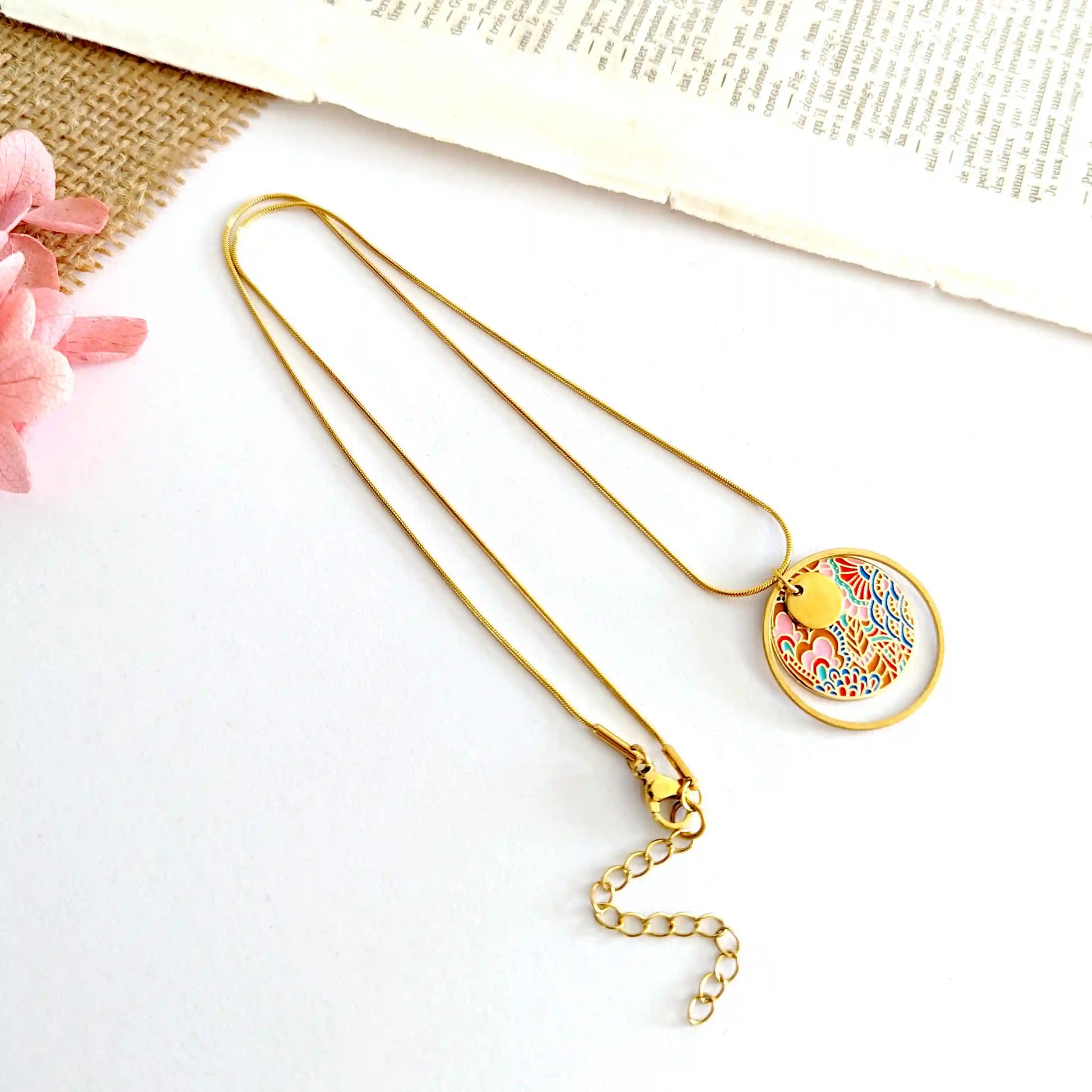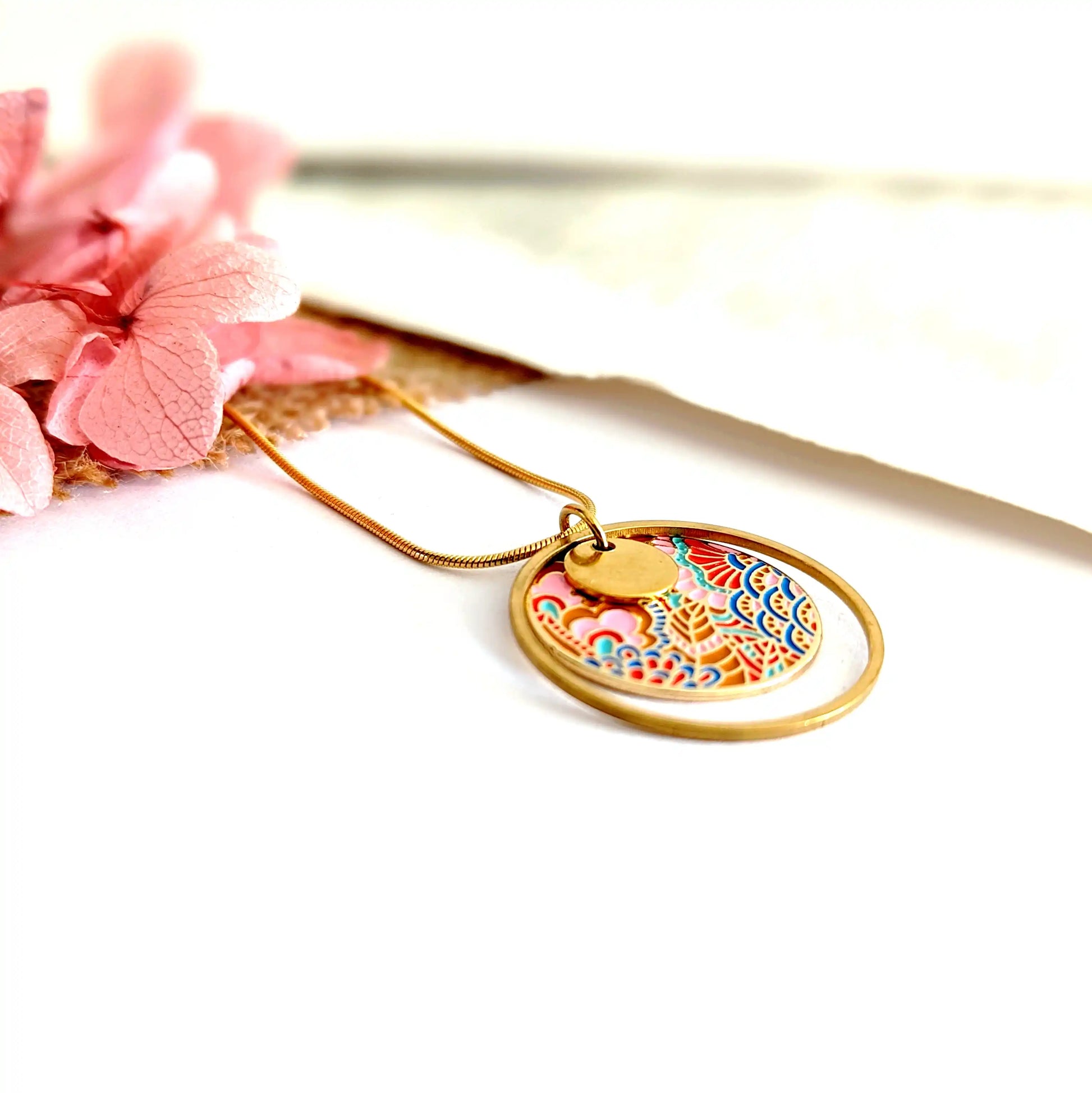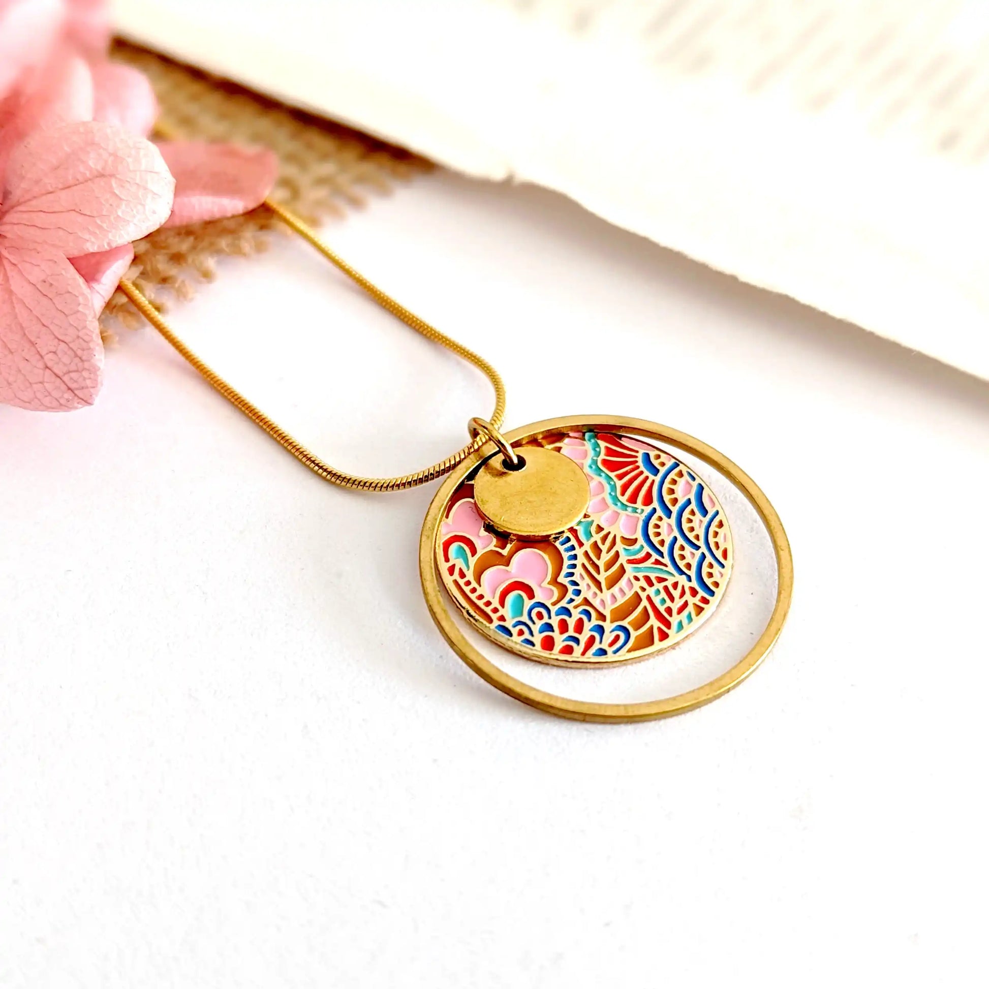 Collier pendentif en émail multicolore pour femme