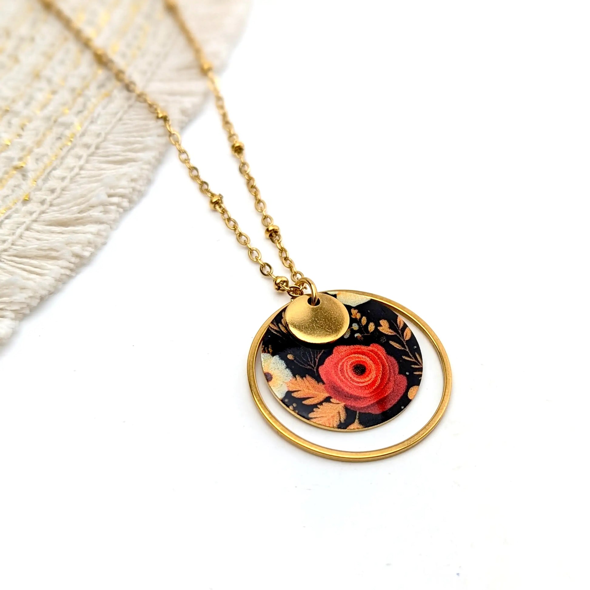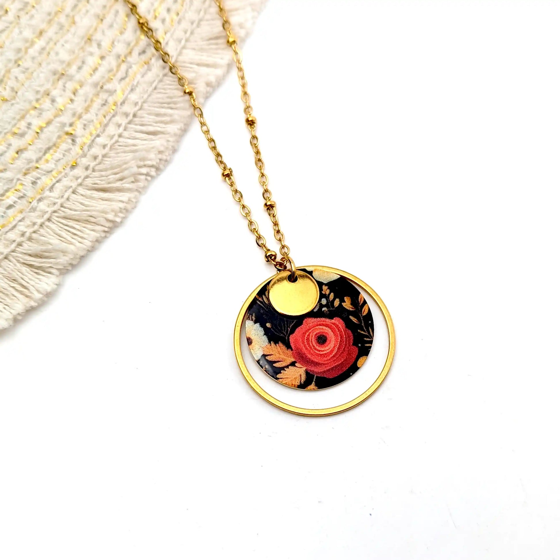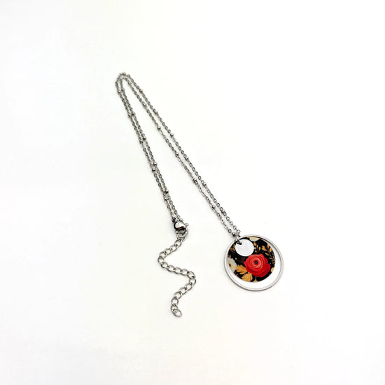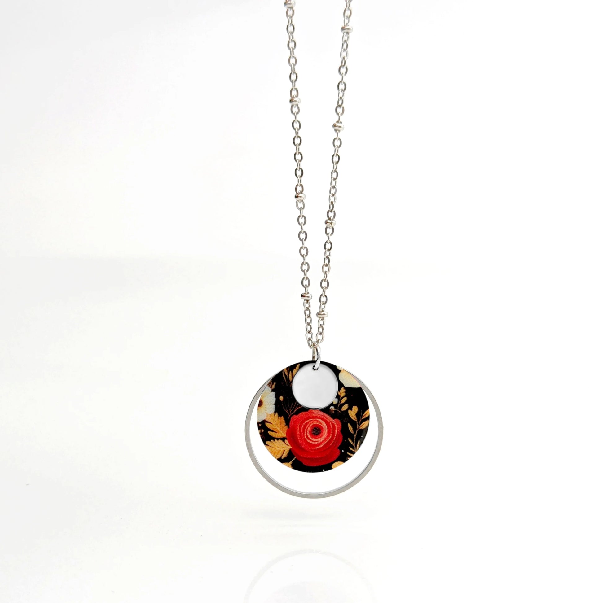 Collier pendentif Fleur d'hiver en résine et acier inoxydable pour femme