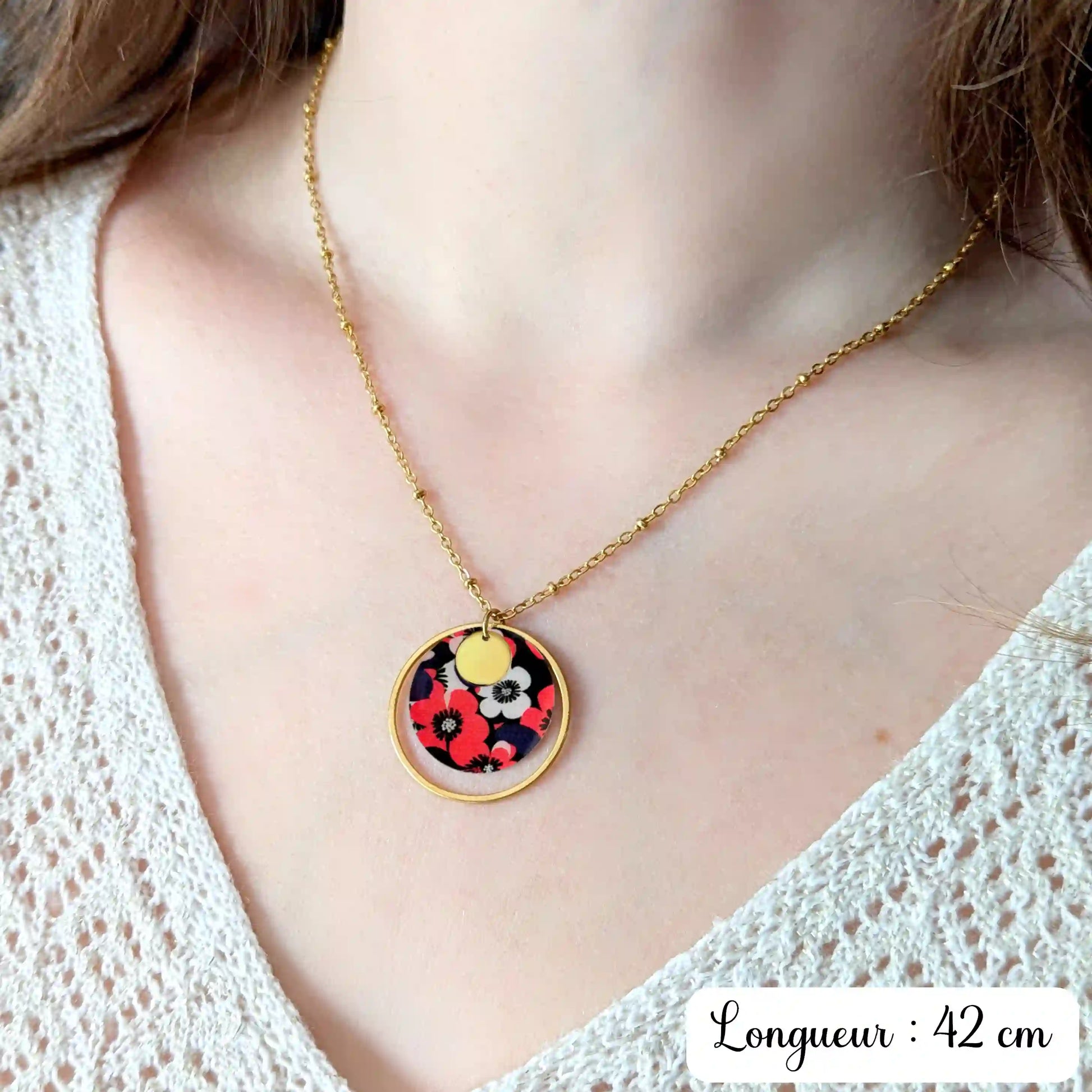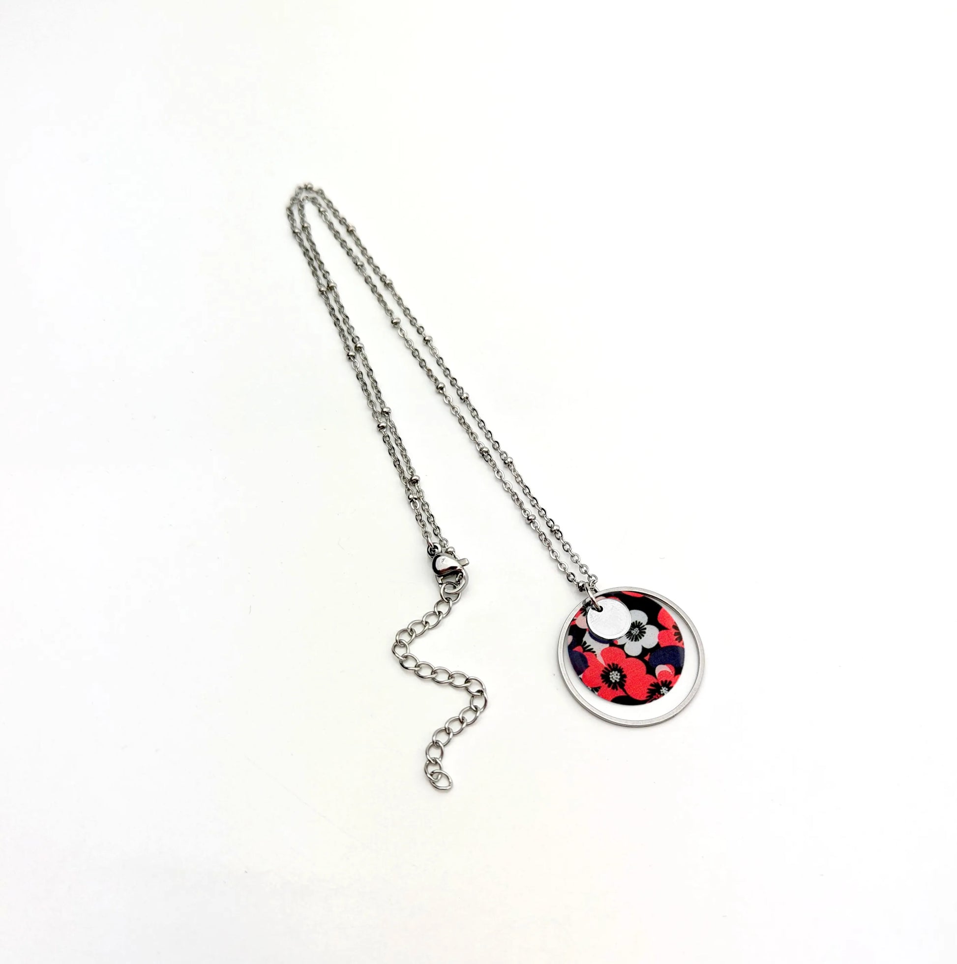 Collier pendentif fleurs rouge et noir pour femme
