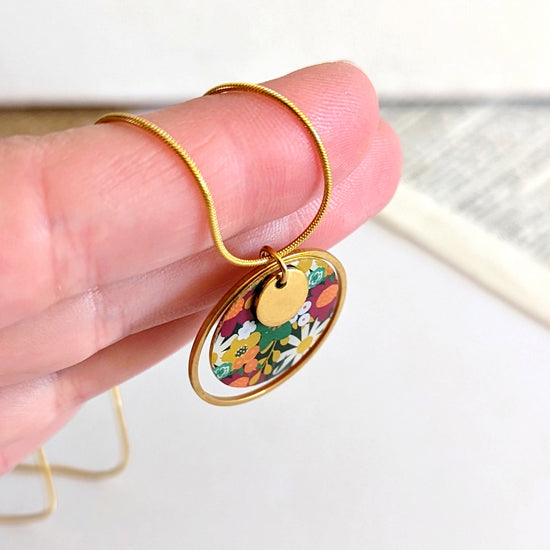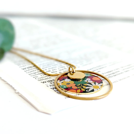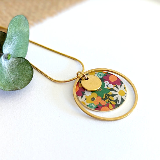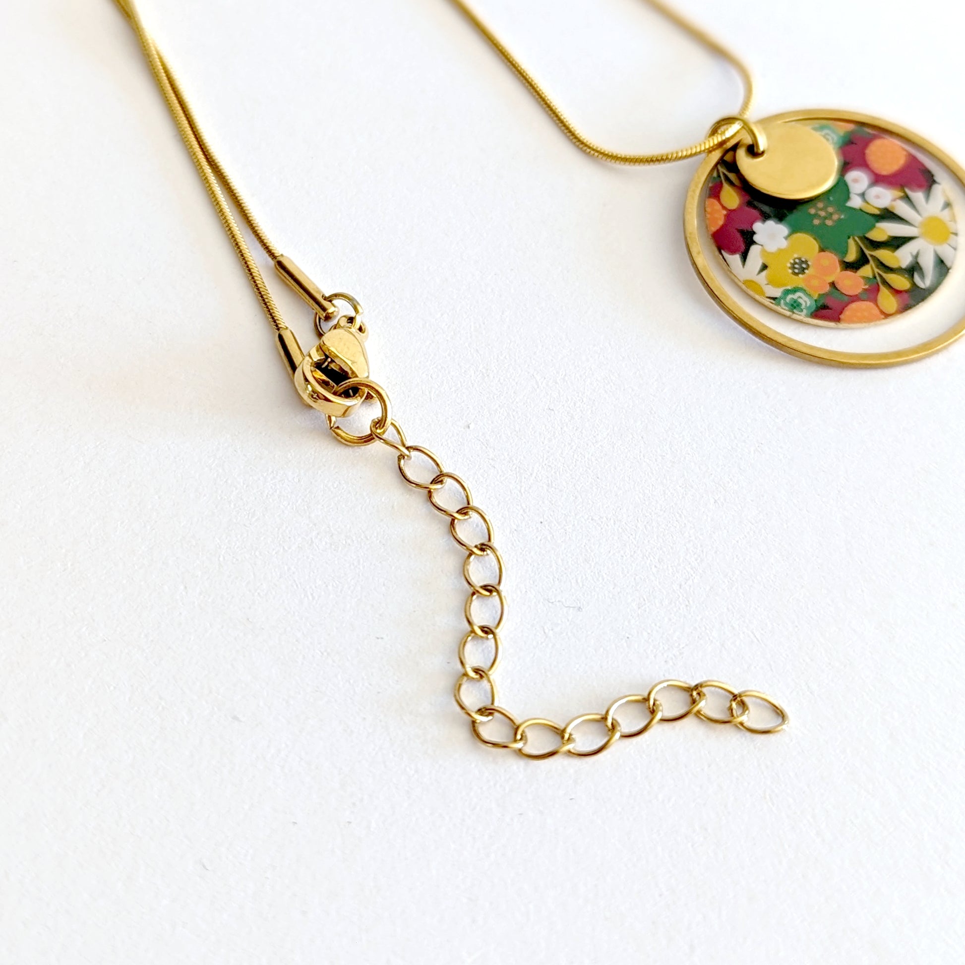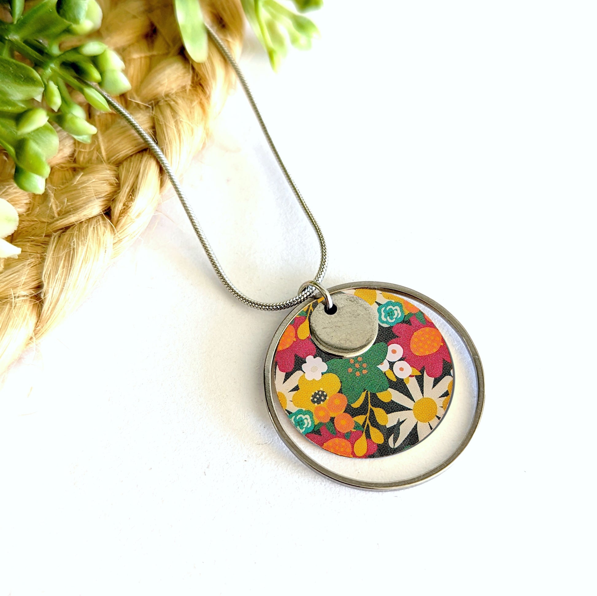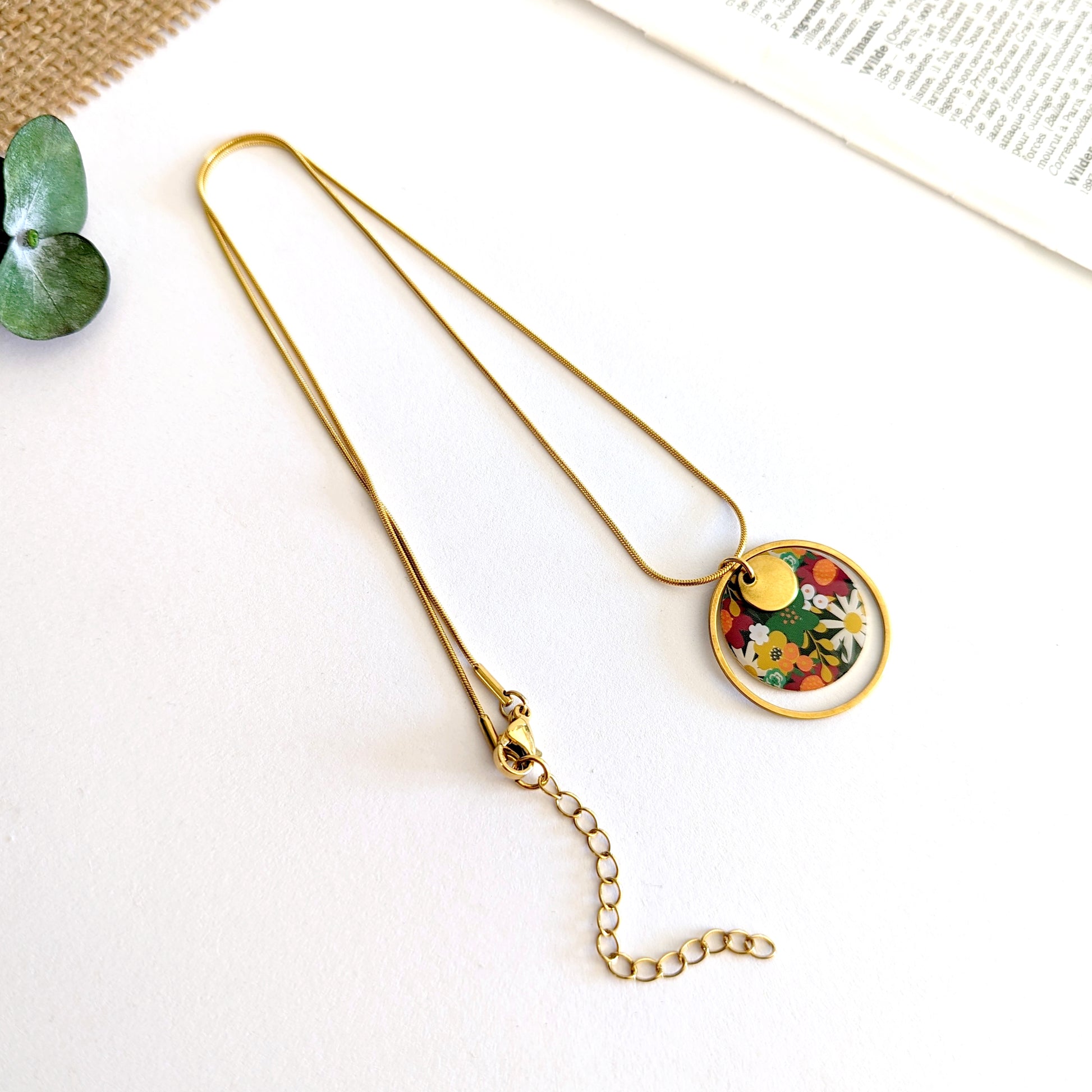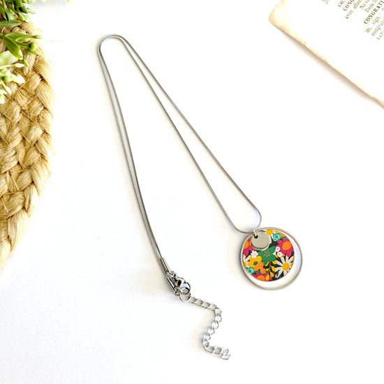 Collier pendentif multicolore en résine pour femme - Motif Floral