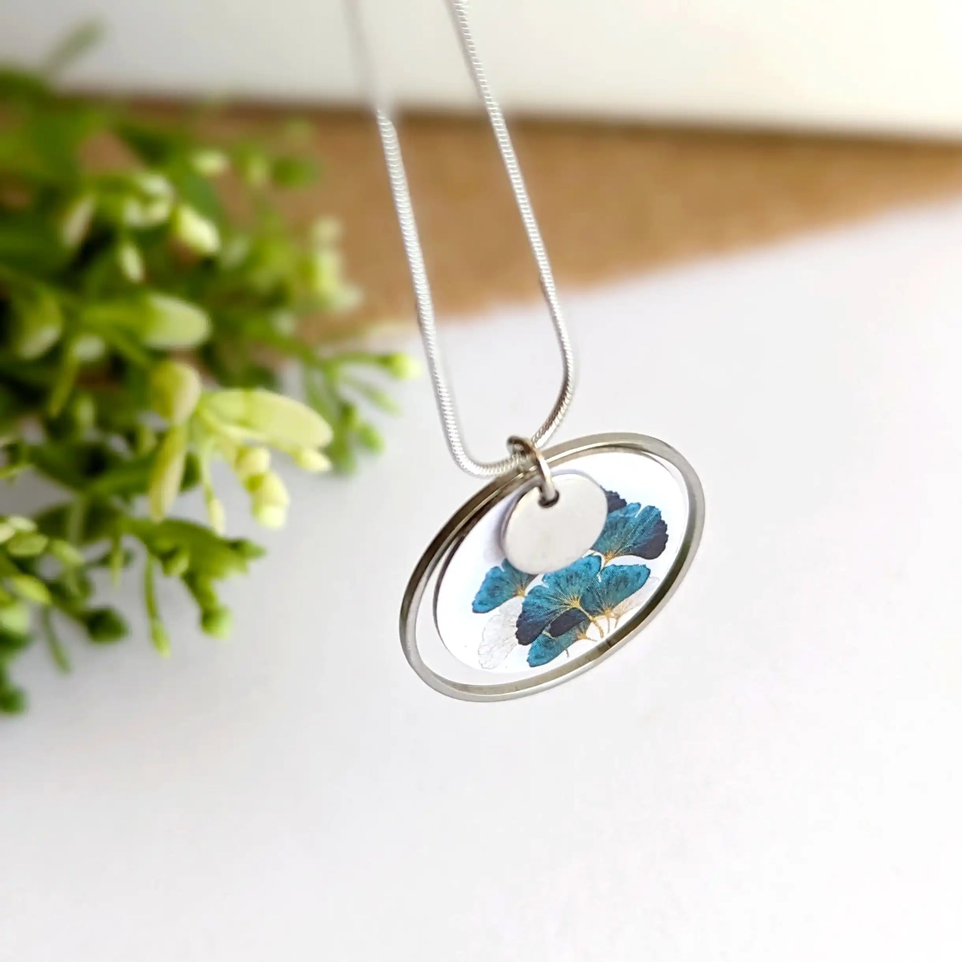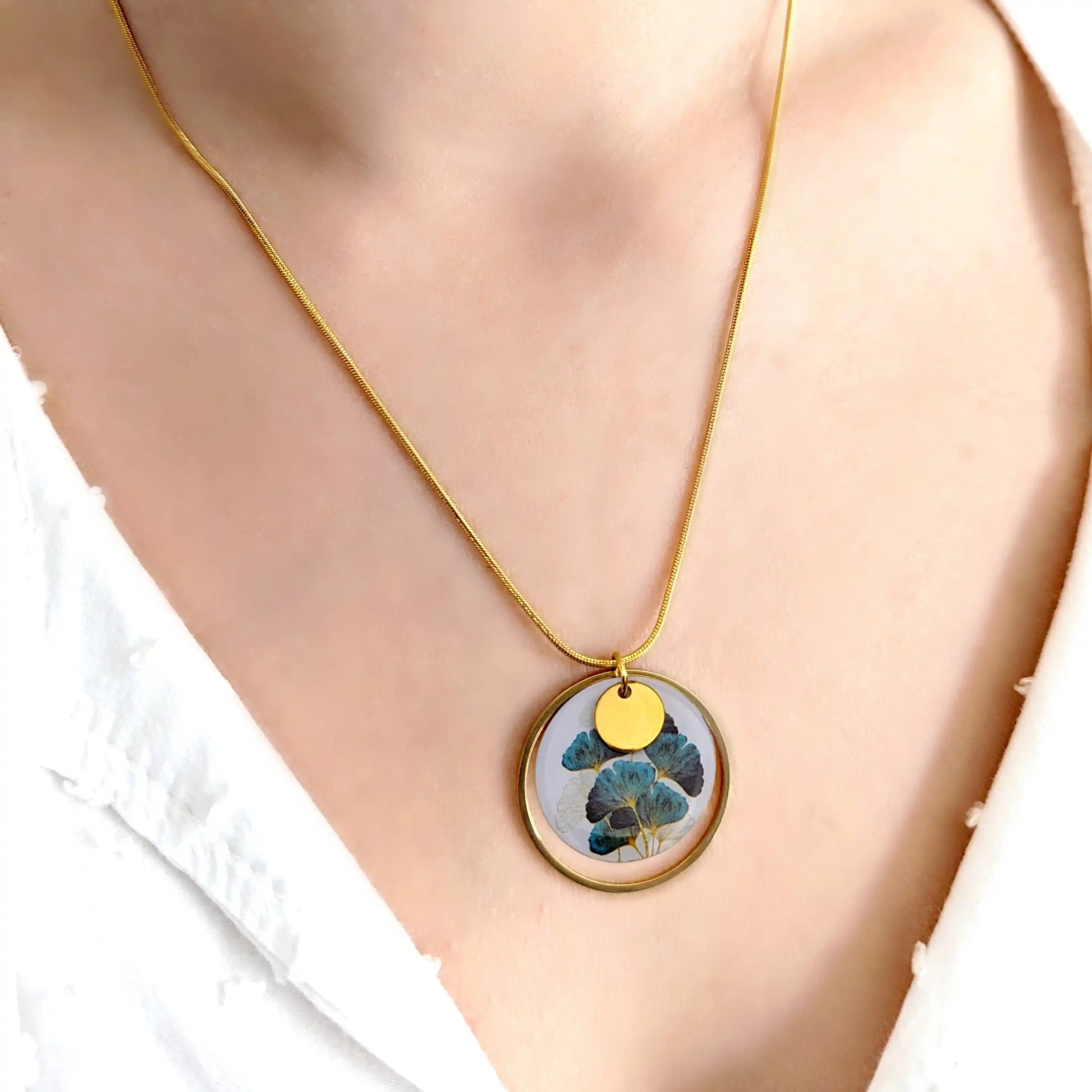 Collier pendentif feuilles de Ginkgo en résine pour femme
